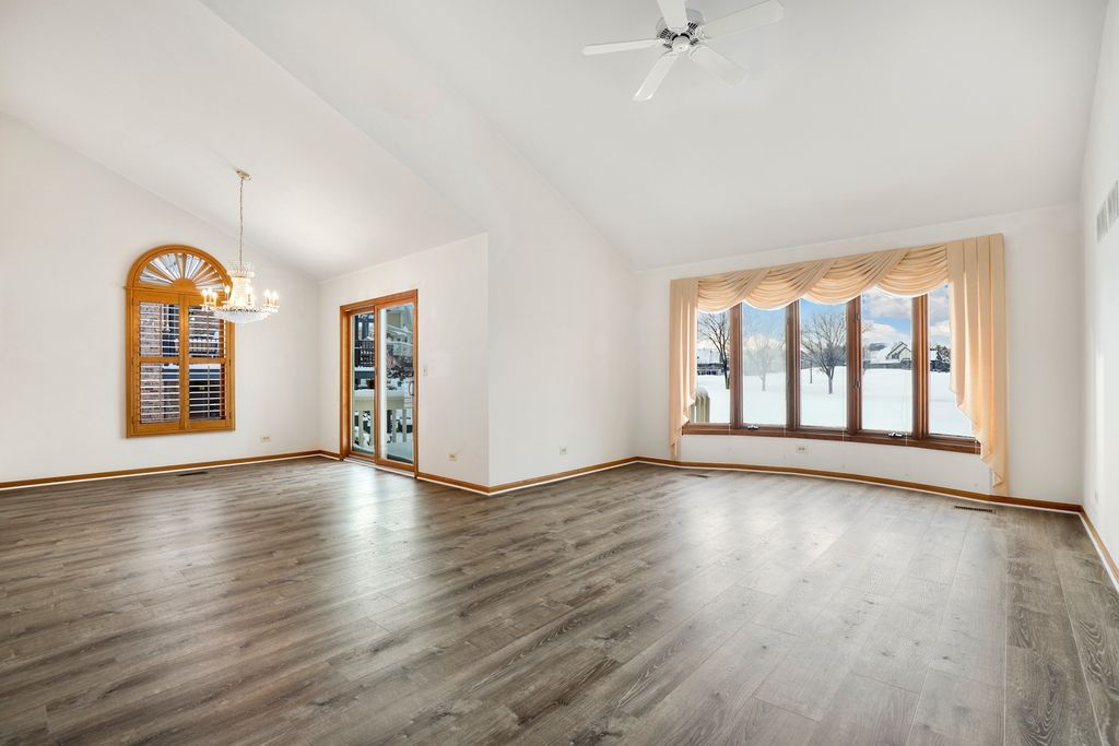 Country Club living awaits in Crystal Tree! Don't miss this rarely available Lismore patio home with gorgeous pond and golf course views! The paver walkway leads to the inviting entry with a grand staircase and dramatic two story foyer with skylight. The formal living room provides a flexible space, anchored by a timeless gas fireplace. Create meals with ease in the chef's kitchen offering granite counters, a large island, abundant cabinetry, hardwood flooring and breakfast nook. Host special occasions in the formal dining room with lofted ceilings and convenient access to the back deck. Enjoy the expansive adjacent family room with a generous bay window that illuminates the entire main level. Unwind at the end of the day in the elegant main level primary suite with a walk-in closet and a luxurious ensuite bath with jetted tub, step-in shower, dual vanities and water closet. A convenient laundry room and half bath round out the main level. Upstairs, you will find a spacious bedroom with a jack and jill bath plus a versatile loft space which could easily convert to an additional bedroom. Entertain family and friends in the finished walkout basement with a large recreation room featuring a floor-to-ceiling brick fireplace, custom built-in cabinetry and direct access to the patio and backyard. The basement also offers a third bedroom, a full bath and a generous storage room. Recent improvements include new vinyl plank flooring, roof, downspouts, gutters (2025), AC and furnace (2024), water heater (2023) - providing peace of mind for years to come! Step outside to the freshly painted raised deck overlooking the tranquil pond and golf course, perfect for relaxing or entertaining. An attached two car garage completes this exceptional home. Crystal Tree is a premier gated community known for its signature 18-hole golf course, designed by world-renowned Robert Trent Jones Jr. Members can enjoy the newly renovated outdoor pool, tennis/pickleball courts, 55,000 sqft clubhouse, dining room, lounge, fitness center, driving range, putting greens, private party rooms, manicured grounds, 24-hour security and more! Fantastic Orland Park location, just minutes from Orland Square Mall, Centennial Park, Lake Sedgewick, Metra Stations, forest preserves, shopping, dining, and schools. Come see today!