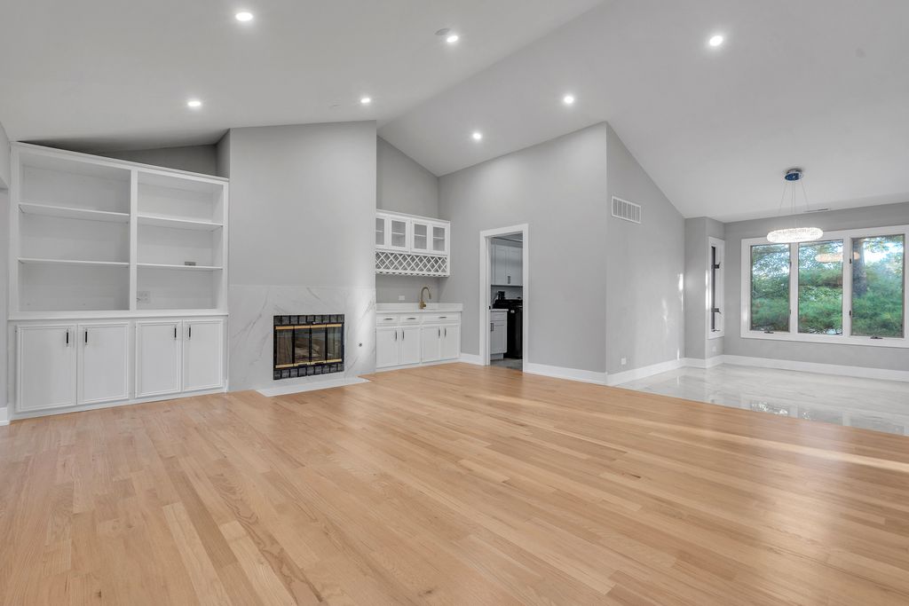 Welcome to this beautifully updated townhome villa, the largest second-floor model with over 2,335 square feet of living space. From the moment you enter, the soaring cathedral ceilings and abundant natural light from all windows with treetop and pond views will impress. The home features a brand-new custom kitchen with stainless steel appliances, perfect for both everyday living and entertaining. A separate laundry room adds convenience, while the expansive living and family rooms each include cozy fireplaces with gas logs. A built-in wet bar and wine rack make hosting effortless. The bathrooms have been thoughtfully updated, including an exquisitely designed hall bath rain showerhead and linen closet. The master suite offers a spa-like retreat with a new soaking tub and beautifully appointed finishes. With generous storage throughout, including the garage, this villa combines elegance with practicality. Located on a quiet cul-de-sac with a private driveway, it also offers easy access to I-55, I-294, Route 83, shopping at Oak Brook Mall, Willowbrook Mall, and local conveniences. Bright, spacious, and move-in ready - this villa truly has it all! Don't miss the chance to see it in person.