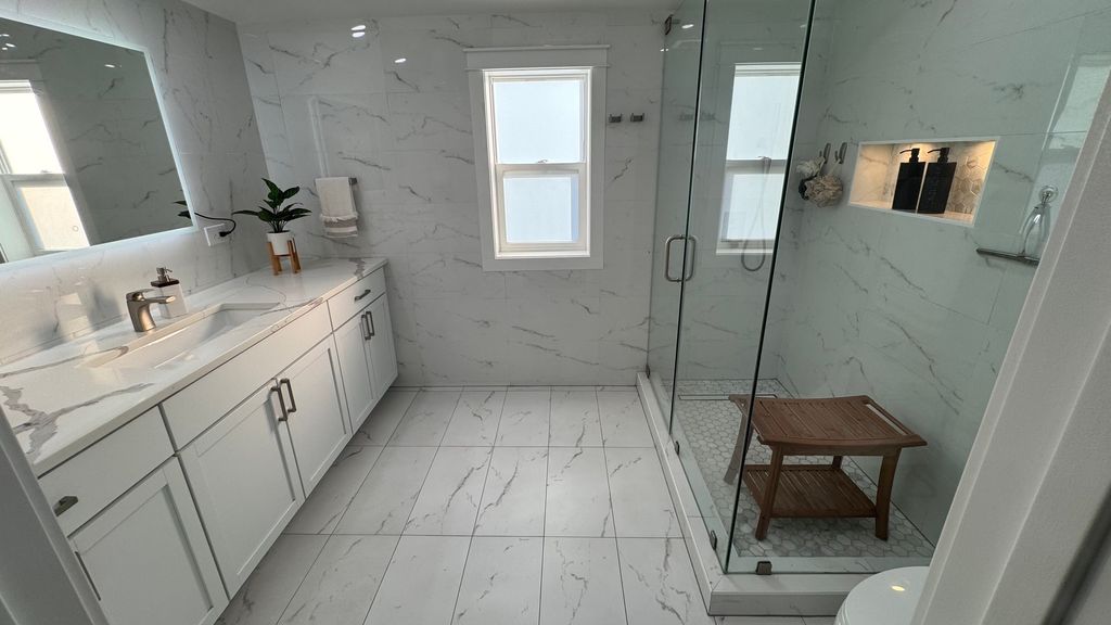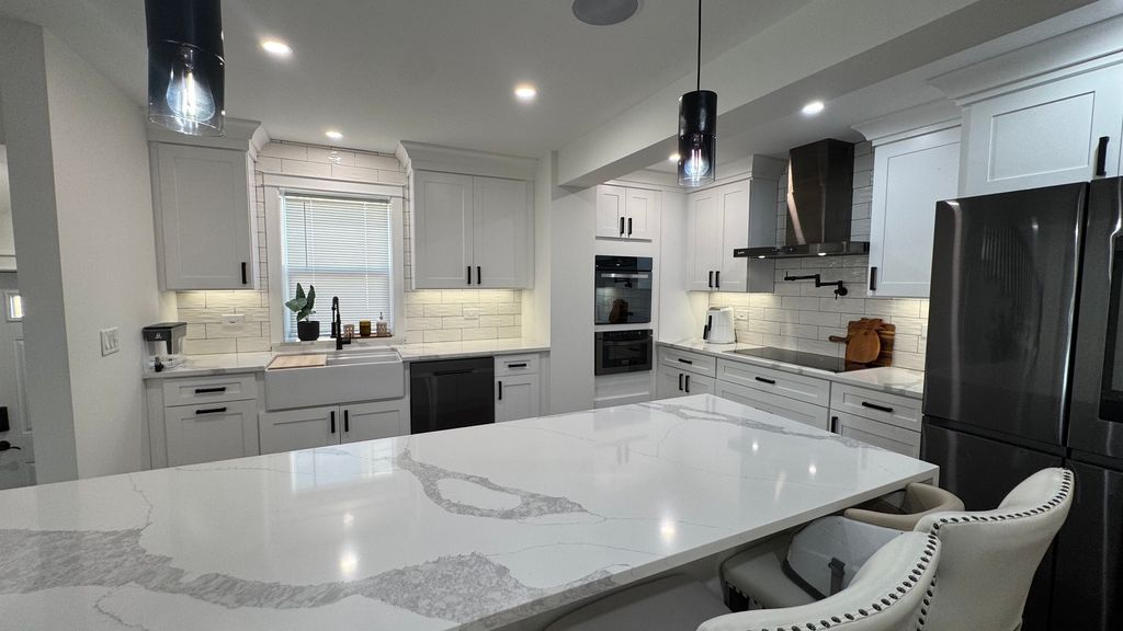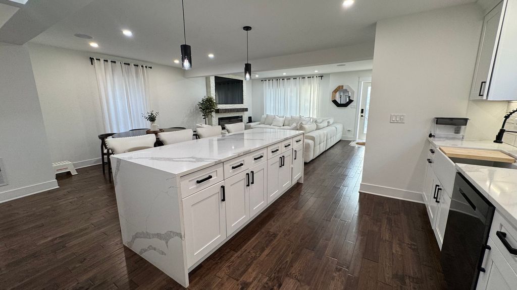 PRICED TO SELL!!! This is a gorgeous and spotless spacious 2 story home!!! It was tastefully remodeled from top to bottom, gutted to the brick walls between 2022 & 2023. A 24' X 20' 2 story addition was built in 2022-2023. This amazing house features: 4 good sized bedrooms. 3 1/2 MODERN BATHS {ONE WITH A JACUZZI TUB}. Main bedroom has a full beautiful bathroom, walk in closet and an electric fireplace. First floor offers a nice OPEN CONCEPT, LARGE living room with an electric fireplace, dining room, an exquisite NEW kitchen with plenty of cabinetry, cooktop, oven, SS dishwasher, microwave, garbage disposal, POT FILLER, QUARTZ countertops including BIG island with breakfast bar for 4 people, bathrooms vanities also have matching quartz. Basement is nicely finished and it offers a large family room, 1/2 bath, laundry area & mechanical's room, it also has a check valve {the addition does NOT have a basement}. 5+ parking spaces. Nice and large fenced back yard with a large area of paver patio/ parking & a huge deck. TOO MUCH TO MENTION *** THE FOLLOING WAS DONE IN 2022-2023: 24 X 20 2 STORY ADDITION, ALL NEW PLUMBING, ALL THE ELCTRIC SYSTEM- INCLUDING WIRING -LIGHT FIXTURES- 200 AMP SERVICE PANEL, ALL INTERIOR WALLS - EXTERIOR WALLS ARE INSULATED, ALL DOORS, HARDWOOD FLOORS ON 1st AND 2nd FLOORS EXEPT IN BATHS, TEAR OFF ROOF, SIDE DRIVE, STAIRS, WINDOWS, FENCE, BUETOOTH SURROUND SYSTEM, 2 ELECTRIC FIREPLACES, TANKLESS HOT WATER HEATER, HIGH EFFICIENCY FURNACE, CENTRAL AIR, AND MORE *** Near shopping and public transportation. Washer, dryer & refrigerator WON'T stay. A true pleasure to show. This is NOT a flip, the owners PLANNED TO LIVE HERE FOR A LONG TIME TO ENJOY THIS AMAZING HOME BUT THE MOTIVE FOR THE SALE IS WORK RELATED. Be the next proud owner.