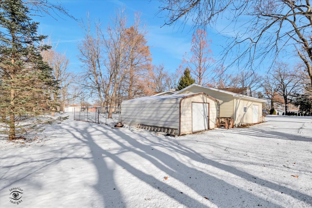 Hobbyist dream! Welcome to this evergreen lined, tear shaped driveway, Ranch immaculately Kept home on just under 1 acre, On a crawlspace. Want for nothing in this Spacious, new paint, new carpet, and move-in, ready oasis. Walk into your family room with natural Stacked stone wood fireplace. Oversized chef inspired kitchen with Island, custom cabinetry, and breakfast nook with sliding glass doors that steps out to your giant covered patio (15x15), overlooking your beautiful and private yard! Not only do you have a 2 1/2 car attached garage with walk-up stairs to attic, but a finished and heated 24 x 30 detached garage with shop benches and cement floor! An additional 20 x 18 metal shed! Mature trees abound unincorporated Steger with Private, well and septic! The whole yard is not fenced in, just right behind the house for a dog run.