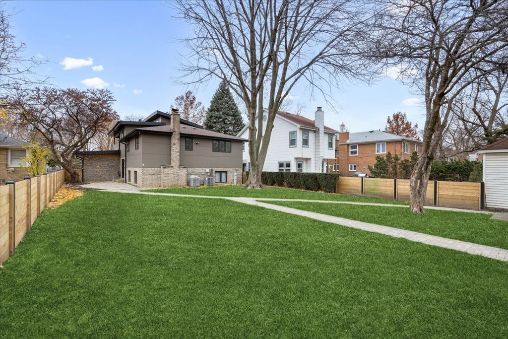 Welcome to an unparalleled luxury residence at 1108 S. Maple Avenue in the renowned Lincoln Elementary school district in Oak Park. This exquisite 2, 773 square feet of living space 5-bedroom, 4-bathroom home underwent a meticulous, top-to-bottom renovation in 2022 by renowned contractor Matt Jacknow, ensuring every detail exudes modern sophistication and comfort. Enter in a light-filled, spacious open-concept living area. The elegant living room offers serene views of Maple Park directly across the street. Flow seamlessly into the gourmet kitchen, a chef's delight featuring abundant custom cabinet space, high-end Bosch appliances, and substantial central island with seating for up to four. Adjacent to the kitchen, the dedicated dining room boasts a practical built-in cabinet and easily accommodates 8-10 guests for memorable gatherings. The second level hosts three generously sized bedrooms and two full bathrooms. The true masterpiece, however, is the new third-level addition, designed as a private sanctuary: a charming fourth bedroom that opens onto a covered deck, an expansive primary suite featuring dramatic, sloping 10-15-foot ceilings, dual walk-in closets, and a spa-like ensuite bathroom complete with a luxurious soaking tub and a separate walk-in shower. The partially finished basement provides additional functional living space, including a comfortable family room, another full bathroom, and a laundry room with extra storage capacity. Move outdoors to this home that sits on a 50 x 170 oversized lot to discover a professionally landscaped front and backyard oasis, perfect for refined entertaining and serene relaxation: a generous 30 x 20 bricked patio, and a 14x15 gazebo for shaded enjoyment. This home combines secluded luxury with unbeatable convenience. Enjoy easy access to local stores, beautiful parks, the Blue Line, and the Eisenhower expressway, making commuting a breeze. Truly move-in ready, this residence offers an exceptional lifestyle opportunity.