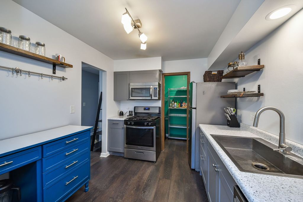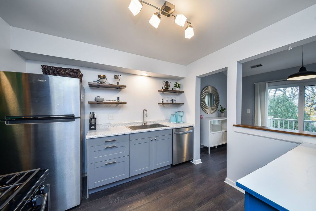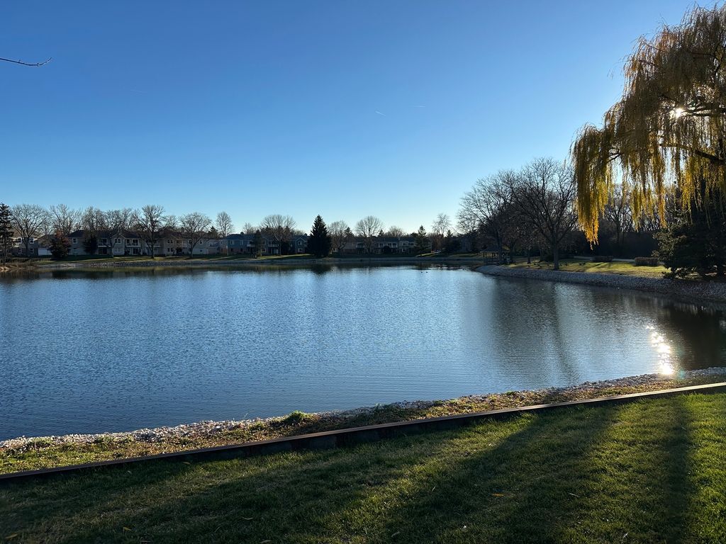 Beautifully improved and lovingly maintained second floor condo offers a newer kitchen with newer cabinets, newer countertops, newer stainless appliances and walk-in pantry, newer bath with newer countertop, newer tile shower surround, newer floors and 6 panel doors, newer lighting, newer replaced windows and sliding doors to the large balcony and newer contemporary interior paint. Warm and cozy, the inviting living room offers a vaulted ceiling and electric fireplace. The separate dining room is large enough to host a crowd, perfect for the holidays. Two nice-size bedrooms boast great closet space. (Closet doors in primary bedroom are available to re-hang, if preferred). A laundry room and single garage complete everything you need. Newer HVAC and hot water heater too! Highlake owns a private lake (swim, fish, canoe) with a private beach and a walking path. Located near the Metra Train and Central DuPage Hospital and not far from the DuPage County Government plaza.