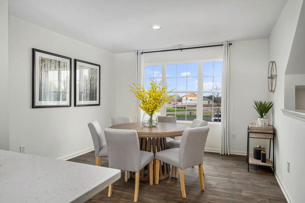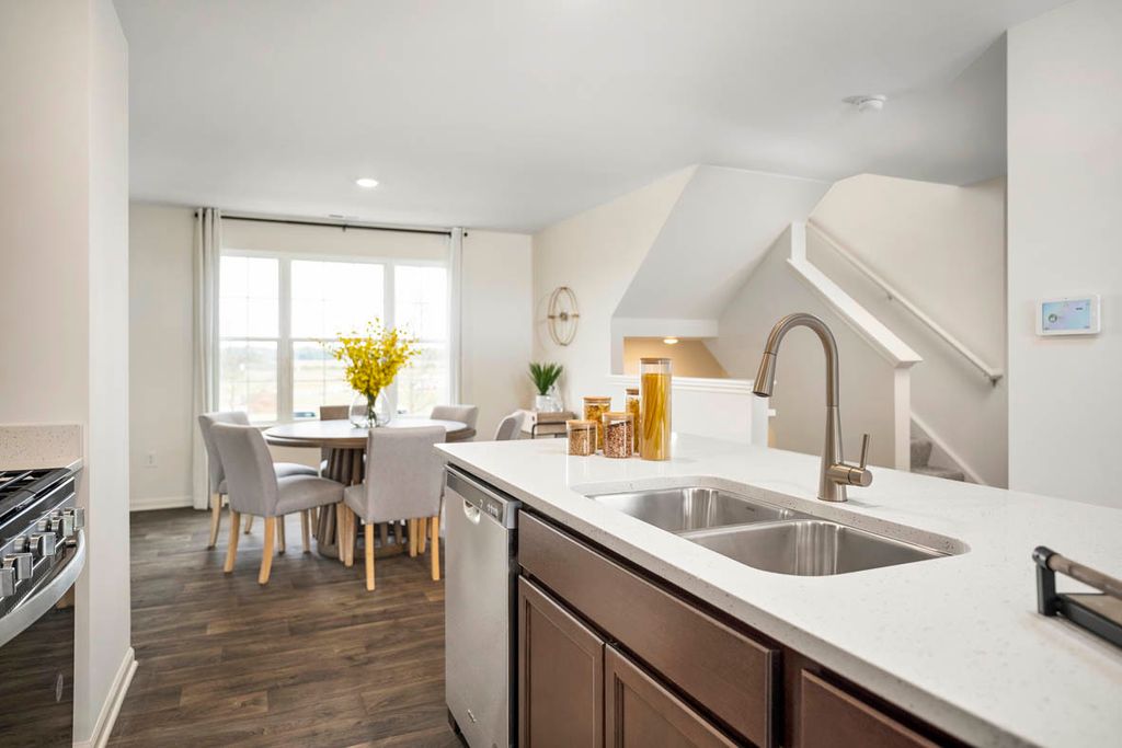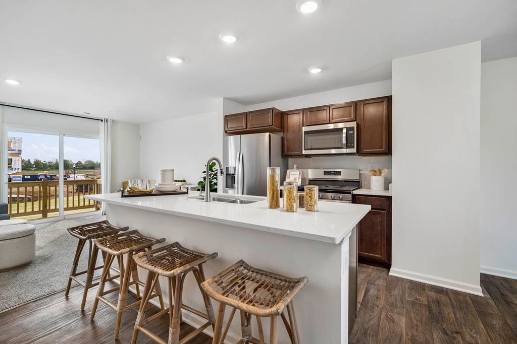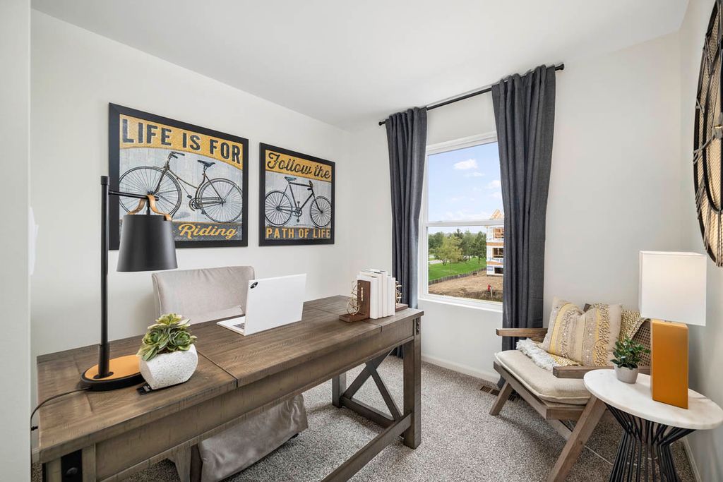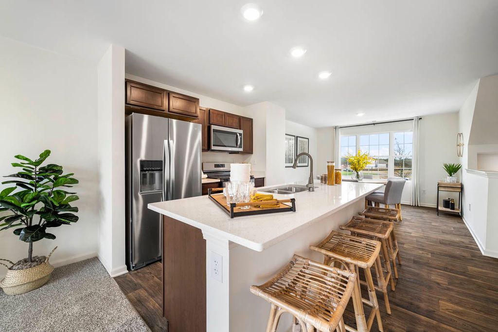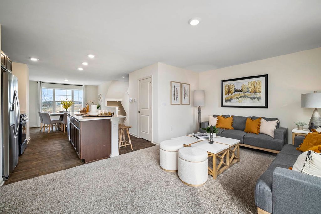 Welcome to 1447 Oakfield Lane in Pingree Grove, Illinois, a new townhome in our scenic Cambridge Lakes North community. This townhome will be ready for an early winter delivery! Homesite includes a fully sodded yard that is maintained throughout the year as well as snow removal in the winter. This McKinley townhome is a captivating open floor plan with over 1,500 square feet of living space which includes 2 bedrooms, loft, 2.5 baths and a finished flex space. As you step inside from the garage you'll be greeted by a finished flex space, perfect for an office or playroom. Walking up the stairs, you will find this home's open concept main level living space centered around a large kitchen island. The cozy kitchen overlooks both the front dining and back great room areas. Additionally, your kitchen features designer cabinetry, quartz countertops, stainless-steel appliances, and pantry. Arriving at the top floor, you'll find our bedrooms with a loft. Enjoy a spacious primary bedroom suite which includes a large walk-in closet lit up by its private bathroom with dual sinks and a walk-in shower. The rest of the upper level features a laundry room, secondary bedroom, loft with a full second bath and linen closet. You'll find luxury vinyl plank flooring throughout the main level kitchen and dining, bathrooms, and laundry. All Chicago homes include our America's Smart Home Technology. Photos and model photos are of similar home. Actual home built may vary.
