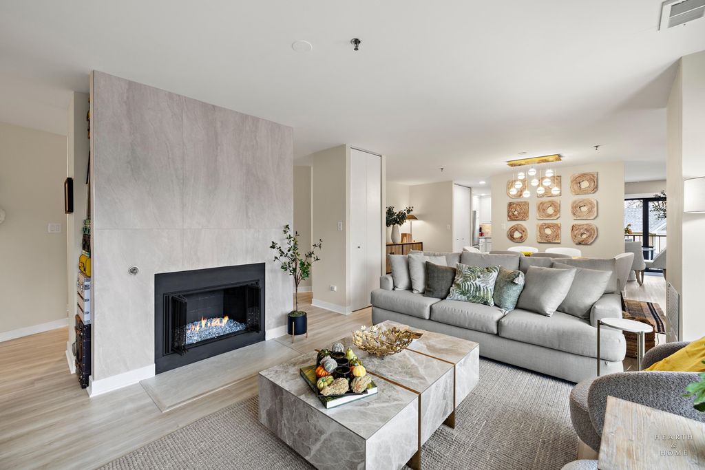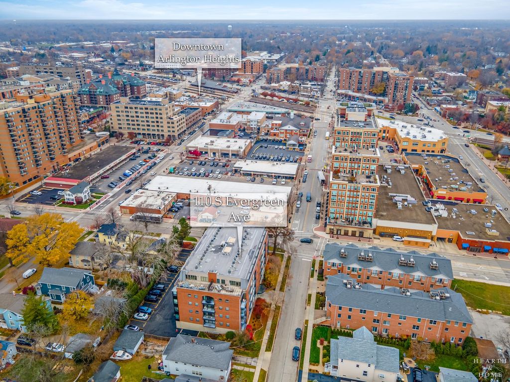 Welcome to our one-of-a-kind home at 110 S. Evergreen! A contemporary, light-filled condominium in the heart of Downtown Arlington Heights, IL - the perfect place to experience suburban convenience with urban flair. This condominium has been remodeled from top to bottom! We cannot wait for you to experience to Luxury you have been looking for! This spacious unit offers a Gorgeous open floor plan with large windows that flood the space with natural light, and 2 balconies to enjoy outdoor living! The wonderfully updated Kitchen features Beautiful modern finishes, sleek cabinetry, and quality appliances make it a delight for cooking and entertaining with its separate dining area with walk out alfresco dining too! The inviting living/dining space provides warmth and comfort for relaxing or hosting guests on the balcony or by the modern glass lit fireplace. The master bath and guest bath are spa like and rival any end high end hotel. The bedroom is a peaceful retreat tucked in the back corner, away from any street noise. The storage for a condominium 2nd to none! Not only does it have 2 coat closets, but a 3rd storage closet, a huge walk-in pantry, large California closets in both bedrooms, as well as 2 well-appointed linen closets too! Plenty of storage to keep your home organized and clutter-free. the unit has 1 great parking space right by the entrance to the building and the exit. Additional spots can be found in visitor parking. Enjoy the ease of building access, well-maintained common areas, and the sense of community that comes with downtown living. Nestled in Downtown Arlington Heights, this condo places you steps from an energetic and walkable neighborhood full of boutique shops, local restaurants, and cafes. Downtown is served by the Metra, giving you convenient, car-free access into Chicago. Arlington Heights is well-known for its strong community vibe, pedestrian-friendly streets, and award-winning schools. Don't miss this rare opportunity to own in one of Arlington Heights' most desirable downtown addresses at 110 S. Evergreen. Love where you live!