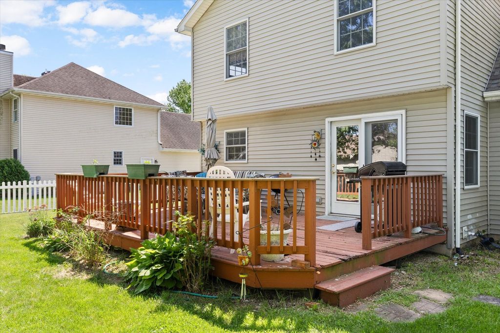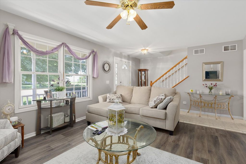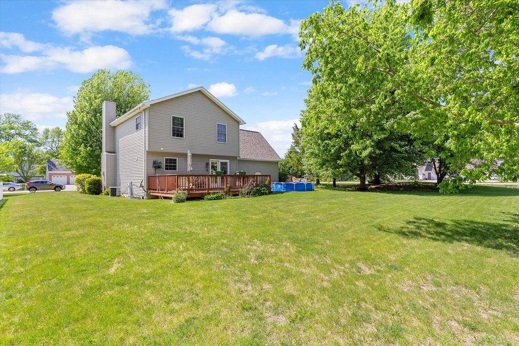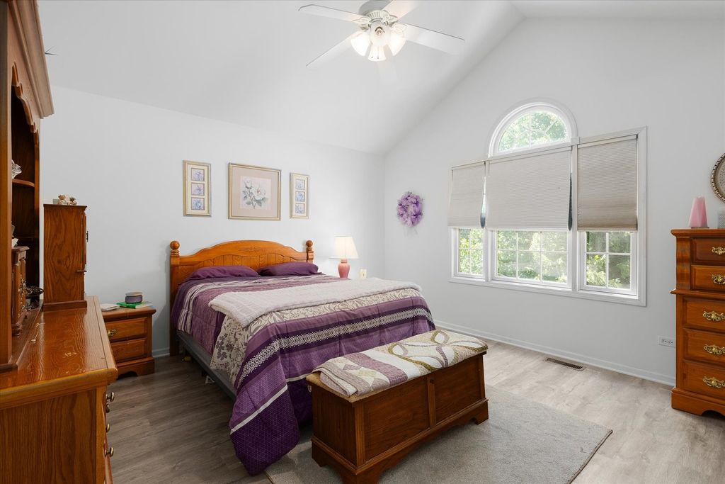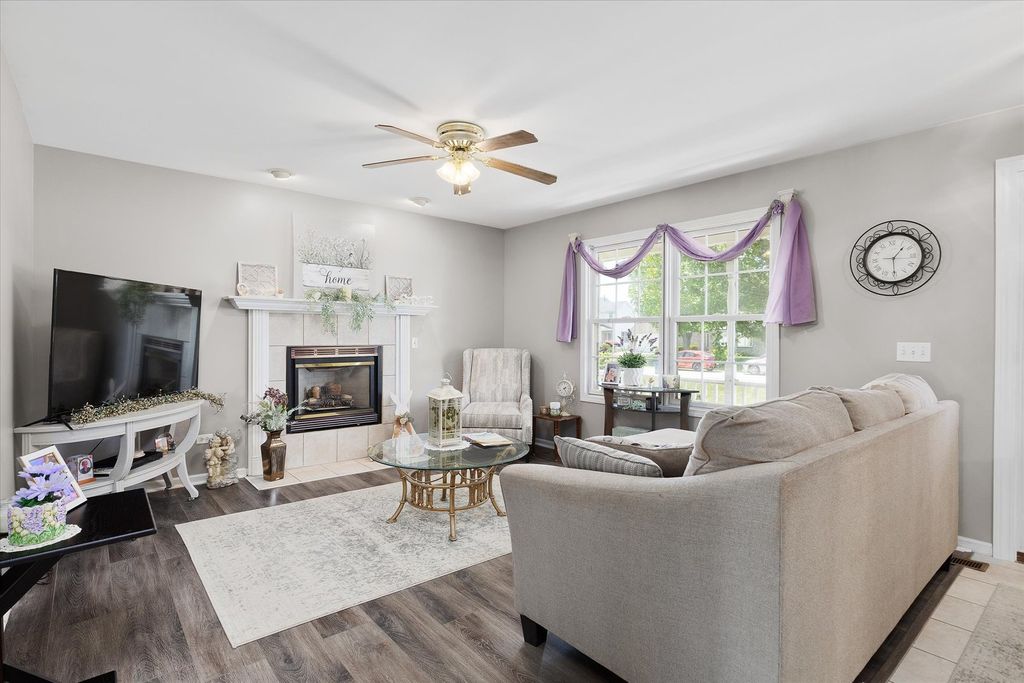 Nestled in a quiet cul-de-sac within a highly sought-after school district, this spacious 4-bedroom, 2.5-bathroom home offers both comfort and charm. Step onto the welcoming front porch and into the bright living room, where natural light pours in, highlighting the brand-new vinyl plank flooring and cozy gas fireplace. The open-concept dining area flows seamlessly into the kitchen, featuring timeless oak cabinets, stylish tile floors, and all included appliances for convenience. Upstairs, you'll find fresh flooring throughout, with plush carpet in two bedrooms and sleek vinyl plank flooring in both the master and the oversized fourth bedroom-an ideal bonus space with endless possibilities. The master retreat boasts vaulted ceilings, a generous closet, and a private en-suite bath, while a full guest bath serves the remaining rooms. A full basement awaits your personal touch, providing ample storage and potential for added living space. Situated on a large corner lot, the home enjoys a wonderful yard perfect for outdoor activities. With fresh paint in many rooms, and a roof just one year old, this home is ready and waiting for its new owners. Make it yours today!