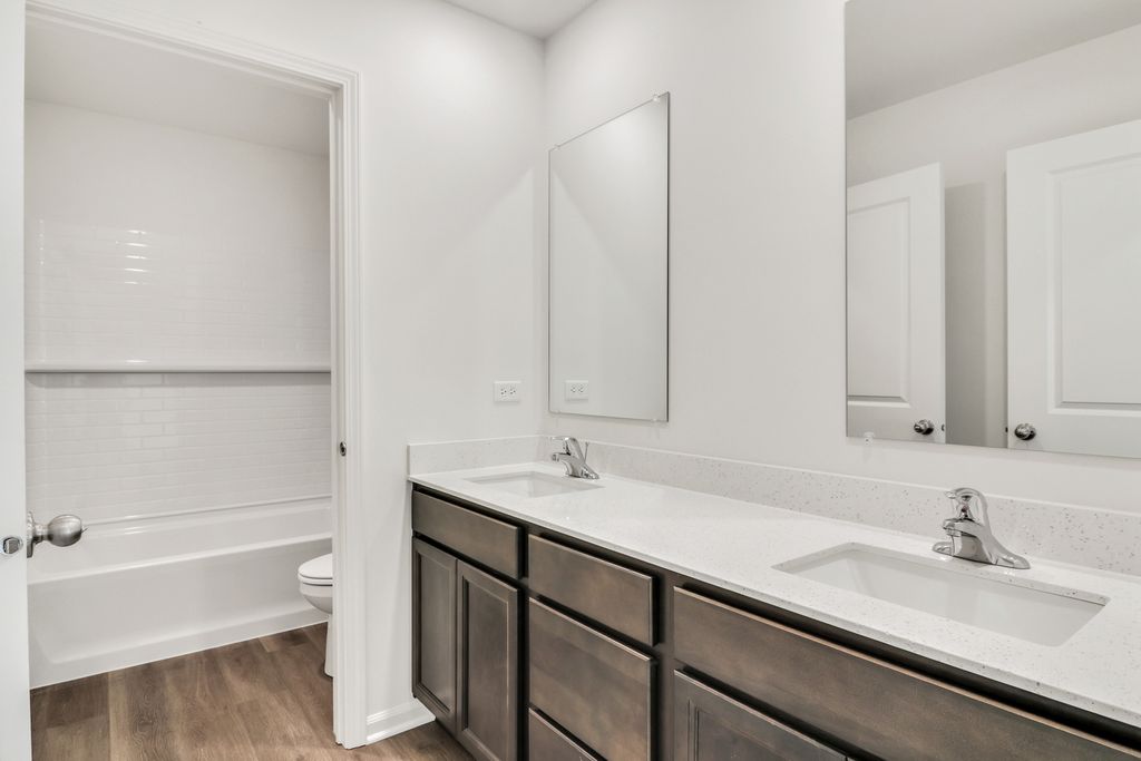Discover yourself at 14761 S Greenbriar Drive, a beautiful new home for sale in our Greenbriar community. This home is ready for a quick move-in! This large, scenic homesite on an open space, no one behind you great for privacy, fully sodded yard. This Coventry plan offers 2836 square feet of living space with a flex room, 4 bedrooms, 2.5 baths, 9-foot ceilings on first floor, and full basement. Entertaining will be easy in this open-concept kitchen and family room layout with a large island with an overhang for stools, 42-inch darkdesigner cabinetry with crown molding and soft close drawers. Additionally, the kitchen features a walk-in pantry, modern stainless-steel appliances, quartz countertops, and easy-to-maintain luxury vinyl plank flooring. More flexible space is waiting upstairs in the 2nd-floor loft, offering unlimited potential to suit your needs. Enjoy your private getaway with your large primary bedroom and en suite bathroom with a raised height dual sink, quartz top vanity, and walk-in shower with clear glass shower doors. Convenient walk-in laundry room, 3 additional bedrooms with a full second bath and a linen closet complete the second floor. All Chicago homes include our America's Smart Home Technology. Interior Photos are of similar home and model home. Actual home built may vary.