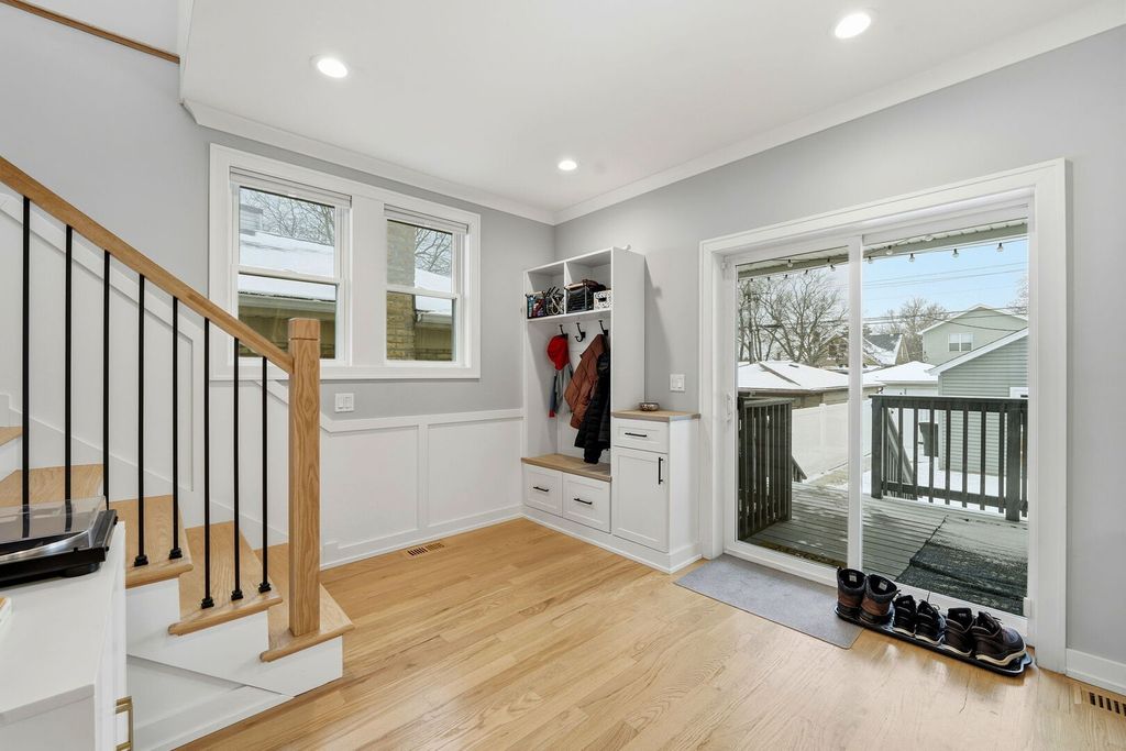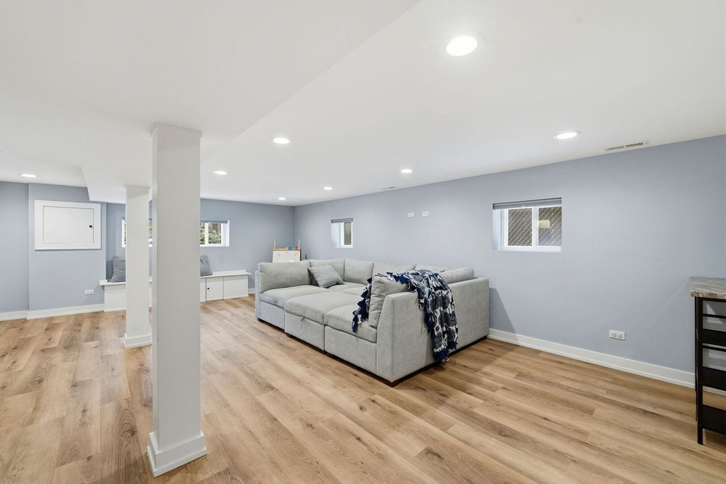 Beautiful, spacious, and meticulously maintained home in the highly desirable Dunning neighborhood of Chicago. This large 4-bedroom, 2 Full and half-bath residence offers a thoughtful, open floor plan with hardwood floors throughout and quality craftsmanship at every turn. The main level features a bright living room with an electric fireplace, a versatile bedroom or home office, and a full bathroom. The elegant kitchen is designed for both everyday living and entertaining, showcasing white shaker cabinetry, stainless steel appliances, updated backsplash, marble window sill counters, and a generous dining area. A custom mudroom back entryway adds everyday convenience and organization. The second floor boasts a stunning primary suite with a walk-in closet featuring custom built-ins, along with two additional bedrooms and a spacious full bath. The fully finished basement provides a large family room, powder room, and ample storage space. Major infrastructure upgrades include two high-efficiency zoned heating and cooling systems, updated electric, plumbing, insulation, newer water and sewer lines, drain tile system, dual sump pumps with battery backup, Leaf filter gutter system, and recently completed city lead pipe remediation from the street to the home. Outdoor living truly shines with a private fenced backyard featuring new concrete, stone pavers, professional landscaping, a large deck with wooden privacy wall, vinyl fencing with lattice detail, and a newer garage - perfect for relaxing or entertaining. Excellent location just minutes from Harlem Irving Plaza, Shabbona Park, Metra, the Blue Line, expressways, Schools and an array of shops, dining, and entertainment. This move-in-ready home combines modern updates, space, and an unbeatable location - a must-see! Click 3D Tour and enjoy!