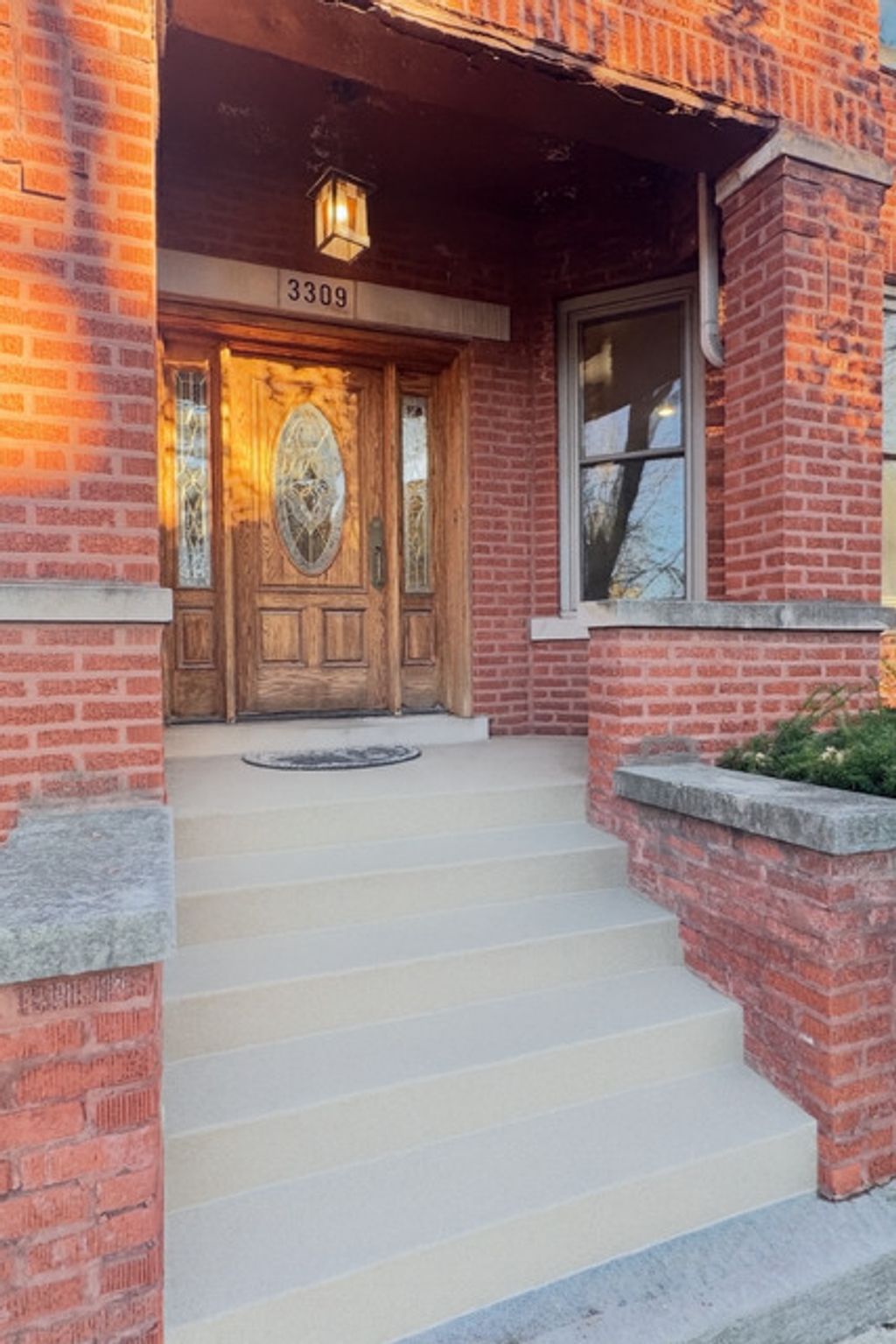 A masterful blend of timeless craftsmanship and modern refinement, this pristinely cared-for brick two-flat has been transformed into an exceptional, one-of-a-kind single-family estate situated on Bridgeport's most coveted block. From the moment you step into the grand marble foyer, the home radiates sophistication, warmth, and architectural elegance. The main level unfolds into an expansive formal living and dining space where newly refinished hardwood floors and restored natural woodwork are illuminated by the dramatic influx of natural light pouring in through oversized windows. A beautifully integrated dry bar anchors the room as a space for relaxation, or creating a seamless environment for elevated entertaining. The sun-filled eat-in kitchen exudes both comfort and refinement, offering a generous center island, abundant cabinetry, and a stylish breakfast bar. New sliding glass doors open effortlessly to a newly constructed deck, perfectly positioned to overlook the adjoining 25' x 135' city lot, complete with its own PIN# and two-car garage offering rare outdoor space in the heart of the city. A full main-level bath with a walk-in shower enhances everyday convenience. Ascending to the second level, you'll discover a serene primary bedroom showcasing rich hardwood floors and original millwork that exudes character and craftsmanship. This floor continues with a second full bath, an upper-level laundry, and two additional bedrooms thoughtfully appointed with custom walk-in closets. Two bonus rooms ideal for an office, sitting room, or additional dining space provides the luxury of versatility and access to the main level through two separate staircases. A private upper veranda invites moments of quiet retreat and elevated indoor-outdoor living. The newly finished walkout basement extends the home's refined living space with contemporary vinyl plank flooring, a half bath, a second laundry area, and dedicated storage. Additional amenities include dual HVAC systems, two heated and enclosed back porches, and a fully fenced dog run creating a lifestyle of comfort, convenience, and thoughtful design. Completing this extraordinary offering is a rare brick coach house, currently configured as a two-flat, brimming with future potential. With separate entrances, the possibilities are infinite as an in-law residence, guest suite, rental opportunity, art studio, office, or personal creative haven. This remarkable residence is more than a home, it is a statement of space, beauty, and urban luxury in one of Chicago's most sought-after neighborhoods.