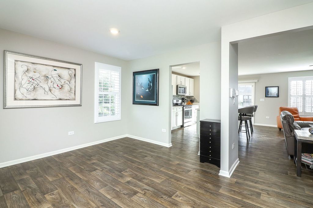 Highly sought-after Ashton townhome end-unit with nice pond view Deerbrook Place! The Ashton is a two-story open-concept townhome that has 3 BR, 2.5 baths, loft, 2nd-floor laundry w/sink, full unfinished basement provides wonderful storage, and 2.5 car attached garage w/ floorguard, ceiling racks, This incredible townhome features a spacious family room, a gourmet kitchen with designer cabinets, custom backsplash, quartz counters, and stainless steel WHIRLPOOL appliances. You'll love the center island too! Take the turnback staircase to your luxurious primary suite, which features two closets including a walk-in, and a perfectly appointed en-suite bathroom with a double vanity sink, as well as a conveniently located loft, perfect for a home office. UPGRADES GALORE: Closets by Design, Plantation Shutters, custom paint thru-out home, ceiling fans with LED lights in every room, ADT alarm, outdoor gas line for gas grill. All this and OSWEGO EAST HIGH SCHOOL! WHEW!!