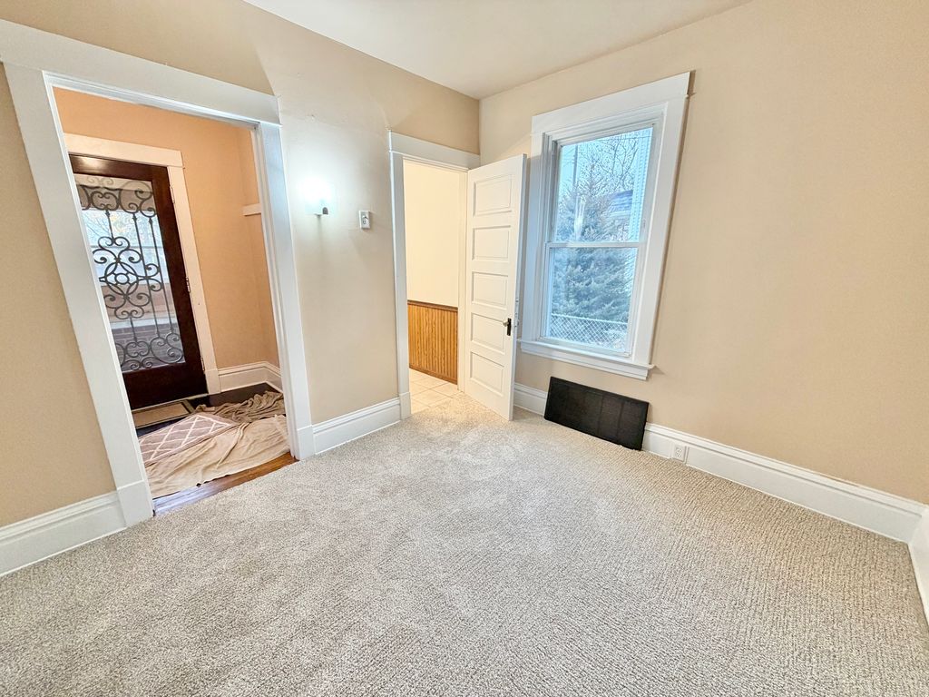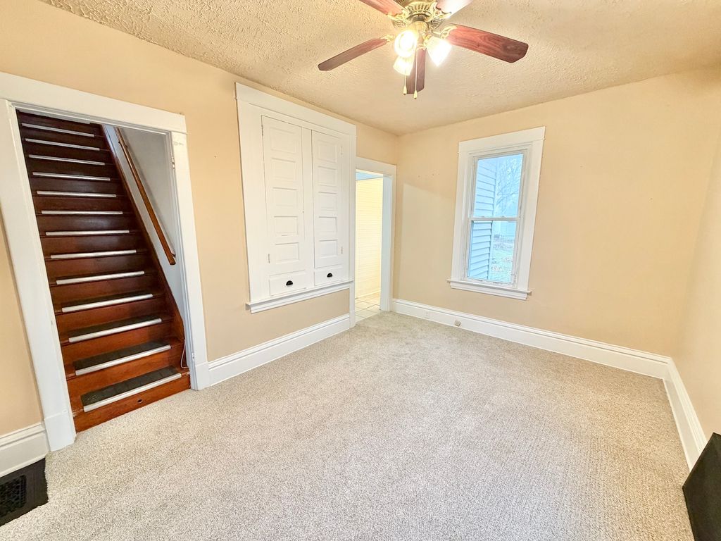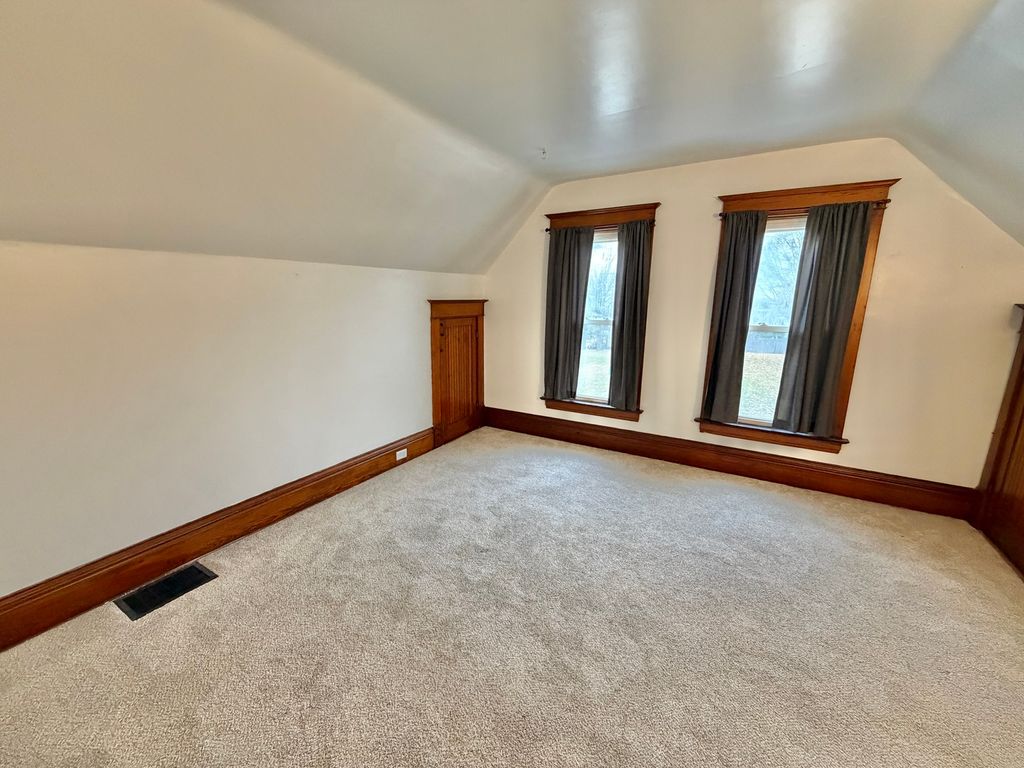Charming two-story filled with original character and thoughtful updates! Step inside the enclosed front porch and into a spacious main floor featuring a large living room, formal dining room with beautiful built-in cabinetry, and a convenient office/flex room. The updated half bath is located just off the main living space. The kitchen offers some new white cabinetry, tile flooring, and countertops (all within the last five years), plus a walk-in pantry and SS stove. Upstairs you'll find two generously sized bedrooms, each with walk-in closets, and a full bath recently updated-including tub surround, vanity, and toilet & fixtures. New carpet runs throughout the home (Hardwoods are believed to be under the main floor carpet) The lower level provides great storage space and a laundry area with washer and dryer hookups; the washer and dryer are only two years old and stay with the property. Exterior features include a fenced yard, updated vinyl siding and windows, and a roof replaced in 2018. Conveniently located near Swedish American Hospital, restaurants, and amenities.