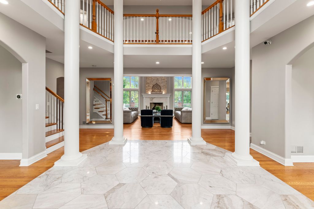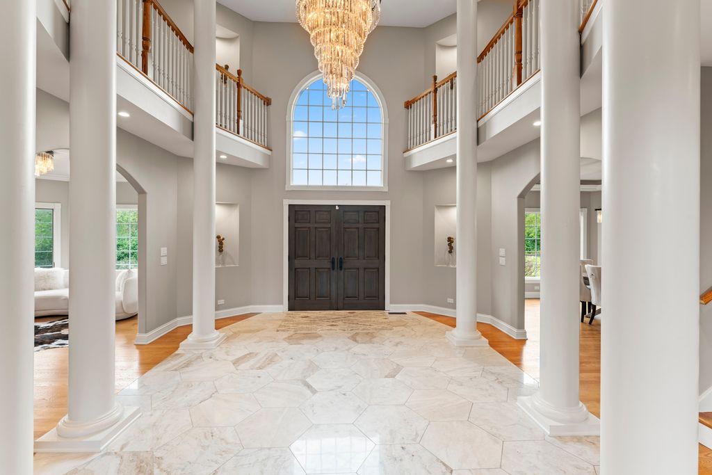 Elegant All-Brick Estate with Walkout Basement on 2.7 Acres in Inverness! This extraordinary all-brick, 5-bedroom, 4.5-bath estate in Inverness' prestigious Country Club Estates is a rare offering. Resting on 2.7 acres with sweeping views of open nature, this home combines timeless sophistication with extensive high-end upgrades. With a walkout basement and a 4-car garage, it offers every feature discerning buyers seek. The home welcomes you with an extremely elegant two-story foyer and opens into a two-story family room filled with natural light. The floor plan includes a kitchen with a spacious eating area, a gorgeous formal dining room, a formal living room, and a first-floor office with French doors and access to the rebuilt deck (2024)-perfect for work or quiet retreat. The walkout basement is a showpiece, recently finished with a granite bar, luxury spa-like bathroom, a bedroom/office, fireplace, workout room, and generous recreation space for poker, billiards, or movie nights. Major updates include: New roof (2024), new front door (2024), new sump pump (2025) and rebuilt deck (2024), Brick pavers replaced (2021) and garage epoxy flooring, Granite tile foyer, renovated powder room, and Restoration Hardware chandeliers throughout the main living spaces,All fireplaces fully renovated, including the primary suite fireplace with stone, granite, and glass doors, Expanded primary closet with custom built-ins and shoe storage, Two fully renovated second-floor bathrooms, Bonus room with wet bar and refrigerator (optional 6th bedroom). With upgraded lighting, hardware, and finishes throughout, this home is as move-in ready as it is breathtaking. All of this in the highly sought-after Fremd High School District. A true once-in-a-lifetime property-this all-brick Inverness estate offers elegance, space, and luxury at every turn.