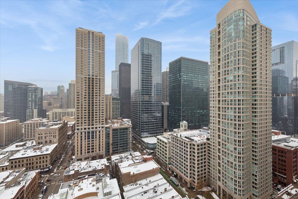Welcome to true Chicago living in this expansive River North studio, the largest studio floor plan in the building. Located on the 25th floor, this spacious condo offers absolutely breathtaking east-facing views of the Chicago cityscape, ensuring fabulous natural light throughout the day. The open-concept design encompasses a gracious living, dining, and sleeping area. Key features include in-unit laundry, a large walk-in closet, and additional storage on the 7th floor. Brand new, never-used stainless steel kitchen appliances, including an LG refrigerator and GE dishwasher, stove/oven, and microwave. Perfect real hardwood floors throughout. This bright and airy residence captures the magic of the skyline, providing a dynamic, ever-changing backdrop that feels alive day and night. The full- amenities building offers a full-time door staff, a large exercise room, a community room, a sundeck with grills, and a pool. It places you just steps from the Riverwalk, top-tier dining, nightlife, and all that Downtown Chicago has to offer. Parking is available for rent or purchase within the building. All utilities are included, with the exception of electricity. Whether you are looking for a sleek city retreat or a smart investment, this studio is a must-see.