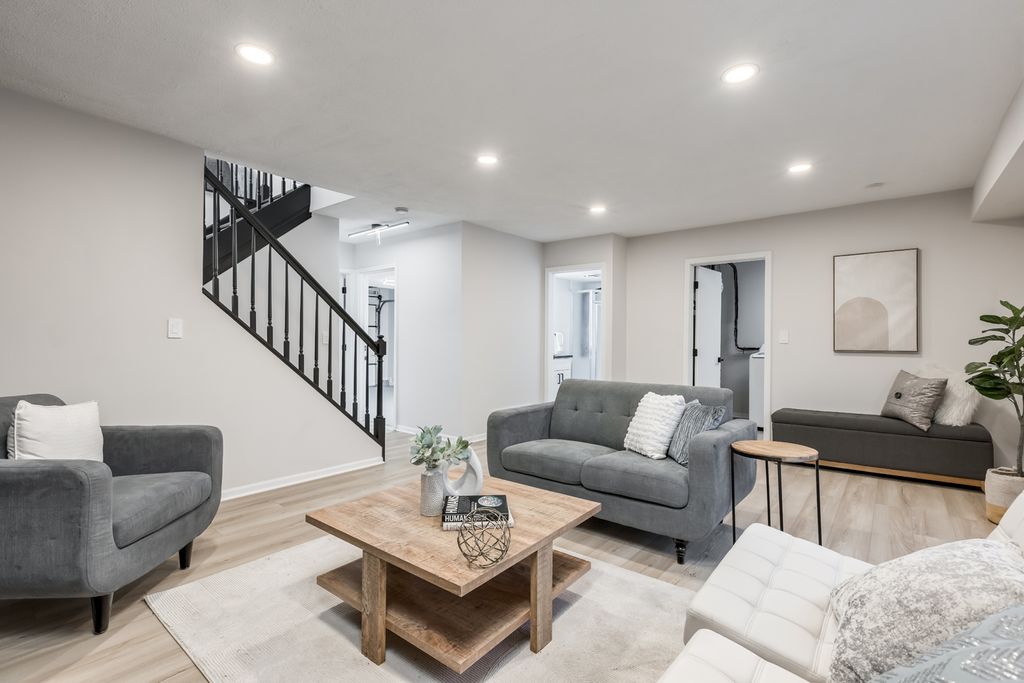 Your dream home is finally here-don't miss it! This beautifully renovated 3-bedroom, 2-bath townhome offers modern living at its finest, welcoming you with an abundance of natural light and an open-concept layout that flows into the dining and kitchen areas. The stunning kitchen features quartz countertops, stainless steel smart appliances, and contemporary finishes, while the spacious primary bedroom provides comfort and style. Both bathrooms are fully updated with modern vanities, quartz counters, and rainfall showerheads. Gleaming hardwood floors, recessed lighting, and ample storage complete the main level, and the lower level features a large family room perfect for entertaining or creating a cozy media space. Located within the boundaries of award-winning schools and just minutes from parks, shopping, and transportation, this home is truly a must-see-pictures don't do it justice! No Association dues community.