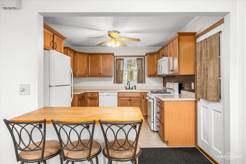 Step into this beautifully maintained 2-bedroom, 1-bath home offering a perfect blend of warmth, comfort, and style. The inviting open floor plan is filled with natural light, creating a bright and airy feel throughout. The spacious living room seamlessly flows into the kitchen-ideal for both everyday living and entertaining! The kitchen features a charming newer butcher block breakfast bar, thoughtfully installed by the current owner, adding both character and function. Just off the kitchen, you'll find a convenient laundry and mudroom area-perfect for daily organization! Both bedrooms are generously sized and the well-designed bathroom offers a clean, modern feel. Outside, enjoy a great-sized backyard-ready for summer barbecues, pets or a quiet retreat. The newly finished driveway and attached single-car garage provide added curb appeal and convenience! Located in the heart of Lake in the Hills, this home offers the perfect balance of comfort and practicality-ideal for a first-time buyer, downsizer or anyone seeking easy single-level living!