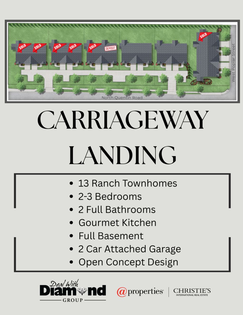 Discover the perfect blend of luxury and convenience in our new construction RANCH townhomes at Carriageway Landing. With a total of thirteen exclusive duplex homes, these thoughtfully designed residences range from 1600 to 1750 square feet, offering spacious layouts ideal for modern living. Each home is crafted with the entertainer in mind. Experience the joy of cooking in a designer kitchen featuring shaker cabinets, ample counter space, a large island with seating, and a walk-in pantry that makes hosting a breeze. The open concept design seamlessly connects the kitchen to the inviting living room, creating a warm and welcoming atmosphere for gatherings with family and friends. Enjoy the ease of main level living, complete with a practical mud room/laundry area just off the attached two car garage, designed for your everyday convenience. Retreat to your serene primary suite adorned with elegant trey ceilings, a spa-like bathroom equipped with a double vanity, and a spacious walk-in shower. You'll also appreciate the generous walk-in closet that offers plenty of storage. Need extra space? This flexible floor plan allows for the addition of one or two extra bedrooms and another full bath on the main level, accommodating your unique lifestyle needs. This stunning home features a spacious full English basement, complete with a roughed-in bathroom, offering you the perfect canvas to create the space of your dreams! Whether you envision a family room, home gym, personal office, or an entertainment area, the potential here is limited only by your imagination. This versatile area provides ample square footage for customization, allowing you to tailor it to fit your lifestyle. Located just moments away from downtown Palatine, Carriageway Landing gives you easy access to a vibrant scene filled with restaurants, nightlife, shopping, and Metra access for effortless commuting.