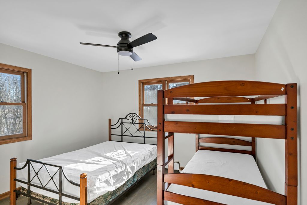 Experience serene living on this stunning property, perfectly blending comfort, space, and natural beauty. If you love nature, this definitely the one you have been waiting for. Set on approximately 5 acres with Nippersink Creek running along the edge-ideal for fishing, kayaking, hunting, on your own estate. This home includes 3 bedrooms and 2 bathrooms arranged within an inviting, open floor plan. Vaulted ceilings, hardwood floors, and a mix of Corian and granite countertops enrich the eat-in kitchen and main living areas. The walk-out basement expands your possibilities, while a cozy fireplace and relaxing whirlpool tub enhance everyday enjoyment. A generous garden and a wide deck overlook the picturesque landscape. The private upstairs master suite features its own balcony retreat. A 2-car tandem garage, along with fresh paint, complete this well-maintained property.