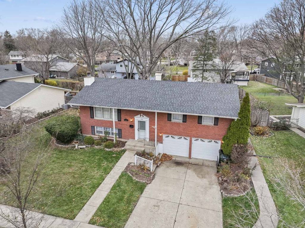 Tucked away in sought-after Winston Park on a quiet, low-traffic street, this raised ranch offers unbeatable convenience near Route 53, Twin Lakes Golf Course & Recreation Area, and Grealish Park. The light-filled living/dining room combo provides an inviting space for both everyday living and entertaining. The eat-in kitchen features cherry cabinets, abundant countertop space, stainless steel appliances, and a pantry, with direct access to the wood deck overlooking the fenced backyard. Three bedrooms are located on the main level, including the primary suite with two closets. The shared hall bath offers a dual-sink vanity and a tub/shower. The lower level expands your living space with a comfortable family room anchored by a wood-burning fireplace, a fourth bedroom, and an additional full bath with a shower. A large, oversized 2.5-car attached garage provides exceptional storage with built-in cabinets, as well as a laundry area complete with a utility sink. The backyard includes a storage shed-perfect for lawn and garden equipment. Major improvements include a newer roof, siding, and gutters (2015). This prime location is just minutes from local shopping, Route 53, schools, Woodfield Mall, and downtown Palatine. A commuter's dream-close to the Metra train station.