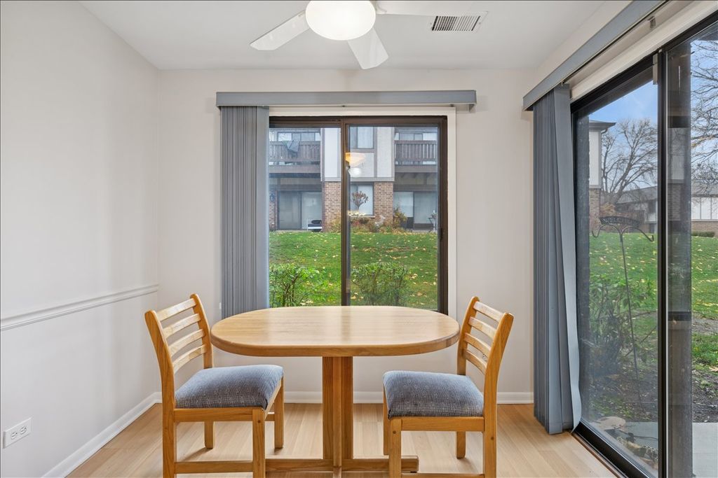 Rare 3 bedroom 2 bath condo: spacious ground level condo highlighting all the amenities of single family home living! Desirable end unit. Formal dining area off a cozy kitchen complimented tile floors and breakfast nook. Large main provides for a roomy en suite full bath & walk-in closet. Comfortably sized second bedroom can double as an office. A private patio off the kitchen & living room. One car attached garage w/a long driveway that fits up to 4 cars. Low monthly assessments & taxes for a charming home in Palatine. In unit washer dryer, and freshly painted. Unit can be rented after 1 year owner occupied ownership. 10 perc. rental cap in community. Garage #7.