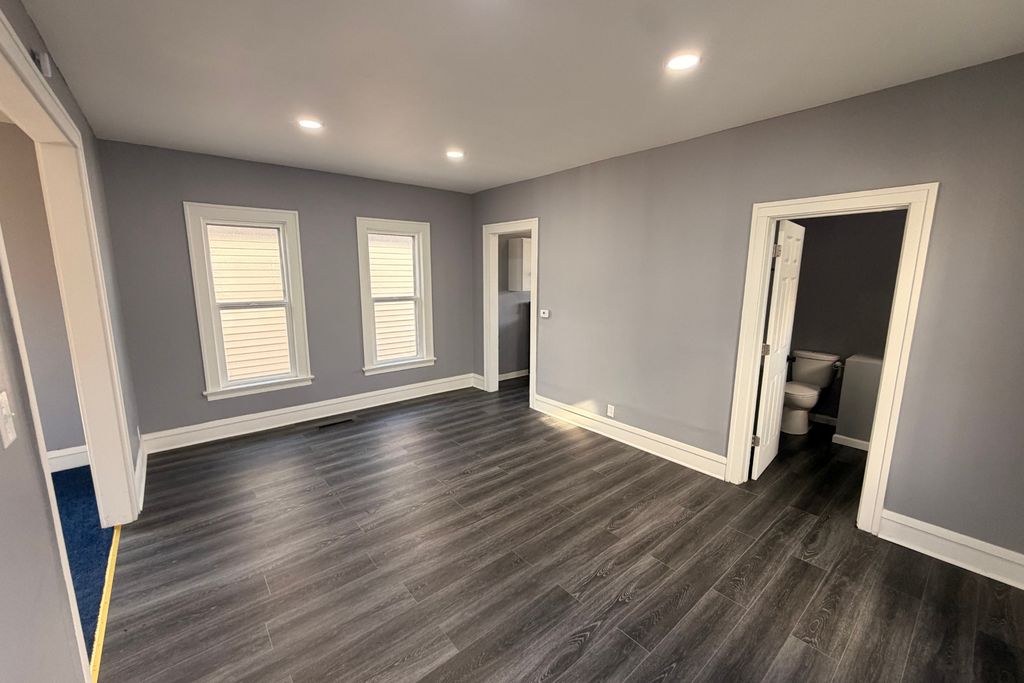 Step inside this spacious 3-story, 4-bedroom, 2-bath home that combines charm with modern updates. With dual front door access and classic white vinyl siding, this home welcomes you with great curb appeal. Enjoy outdoor living on the concrete patio and take advantage of the 2-car detached garage. The first floor features a generous layout with separate living, dining, and kitchen areas-perfect for entertaining or relaxing in style. The updated kitchen boasts luxurious gold fixtures, a multifunctional sink, and stylish finishes that elevate the space. A convenient full bath just off the dining room is ideal for guests. Throughout the home, light blue walls and bold blue carpet create a unique and cozy vibe, while the custom stair handles add both style and functionality. Upstairs, you'll find three well-sized bedrooms and a full bath, including a primary suite with dual closets. The third floor offers a private fourth bedroom filled with natural light-perfect as a guest room, office, or creative retreat. Plus, there's plenty of extra storage space. Additional highlights include a brand new furnace and water heater for peace of mind. Don't miss this rare blend of space, style, and thoughtful updates!