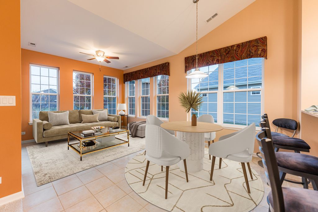 NEW YEAR! NEW HOME!! Quick close is available. NO MORE SHOVELING! NO MORE MOWING LAWNS! TIME TO ENJOY RETIREMENT! If you like the idea of low maintenance living, but like the freedom of a single family home, this place is for you! Welcome to the 55 and up community of Carillon. This very popular Monte Carlo model has 2 car heated garage, 2 bedrooms and an office as well as A LARGE SUN ROOM! The kitchen features vaulted ceilings, granite counters, and glass backsplash. You have a dining area AS WELL as an eating area in the kitchen, making it a great set up for entertaining! Need some quiet time? Curl up with a book in the sunroom and enjoy all of the bright light streaming in. Enjoy a relaxing soak in the walk-in tub by Ella Bubbles (installed 2023). The living room and office feature motorized blinds which can be controlled with a remote or your phone. The Aprilaire Humidifer was installed in 2024. Carpet installed 2025. If you are an outdoor person, you can enjoy grilling with a gas grill hook up in the back on your beautiful extended patio. This lot is very private for the area! Mature landscaping and trees make this a relaxing retreat. The community features a 3 hole golf course (exclusively available for residents and their guests), indoor and outdoor swimming pools, work out room, billiards, community room (with loads of activities), tennis/pickleball courts and more! If you enjoy walks, there are sidewalks throughout the community and approximately 2 miles of walking/biking paths around the community ponds. Snow removal and lawn care are included as well in your monthly assessment, allowing you do just move in and relax! Welcome home!