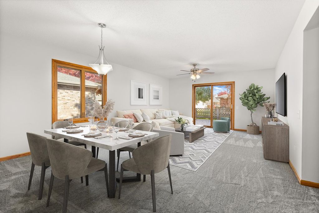Completely Remodeled Brick Ranch Duplex in Quiet Subdivision Welcome to this stunning 2-bedroom, 2-bathroom brick ranch duplex that's been beautifully remodeled and is truly move-in ready! Nestled in a peaceful subdivision, this home offers comfort, style, and functionality. Step onto the oversized front porch-perfect for morning coffee or evening relaxation. Inside, enjoy an open concept living and dining room with brand-new carpet and sliding glass doors that lead to a spacious backyard and deck, ideal for entertaining. The kitchen is a chef's dream with abundant cabinetry, generous counter space, new stainless-steel appliances, wood laminate flooring, and a cozy eating area bathed in natural light from the front window. Both bedrooms are generously sized, including a primary suite with a full private bath and walk-in closet. The guest bathroom is also full-sized and beautifully updated. A full unfinished basement offers endless possibilities for storage or future expansion. The deep 2-car garage provides ample space for vehicles and more. This gem won't last long-schedule your showing today!