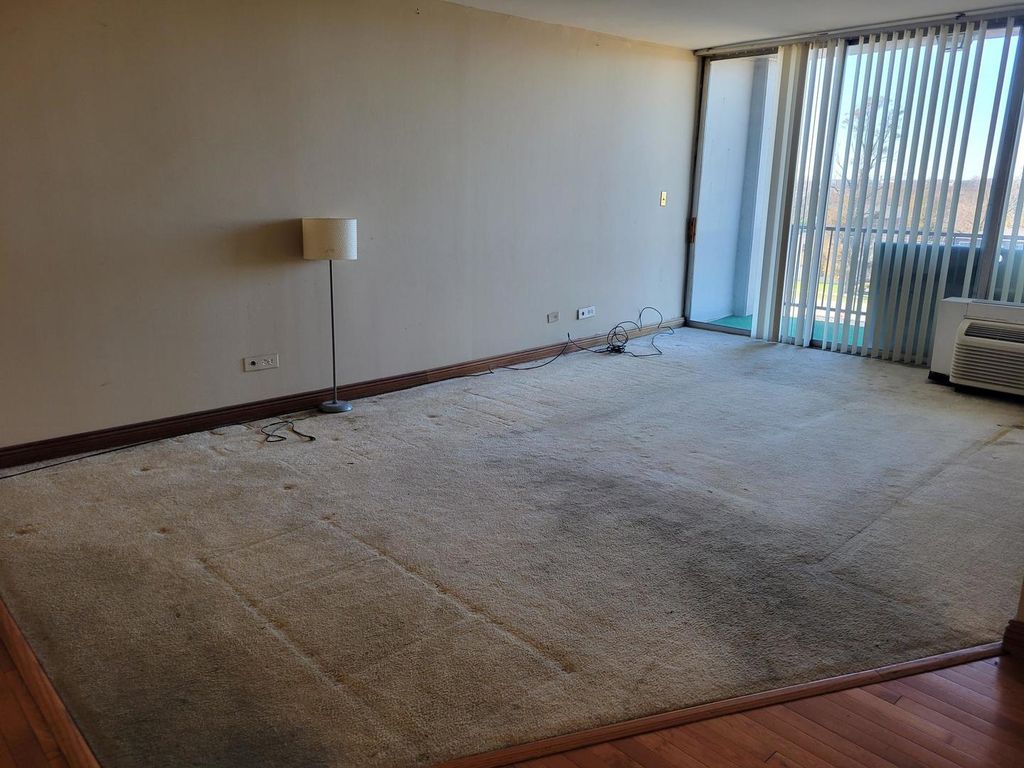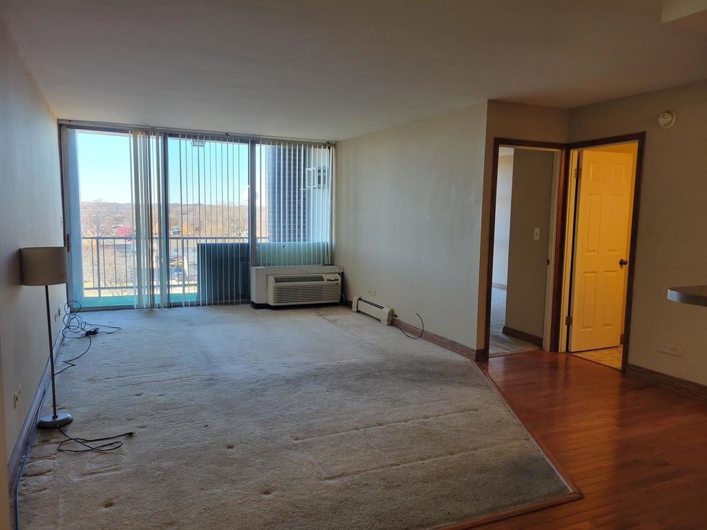 Top floor. Sunny, spacious one-bedroom apartment with breathtaking west view. Kitchen with ample cabinetry and breakfast bar, open to the living and dining area.Spacious bedroom. Plenty of closets.Building amenities including an elevator and extra storage.A great location close to shoping just minutes from the Metra. Needs some updating, sold As-Is.