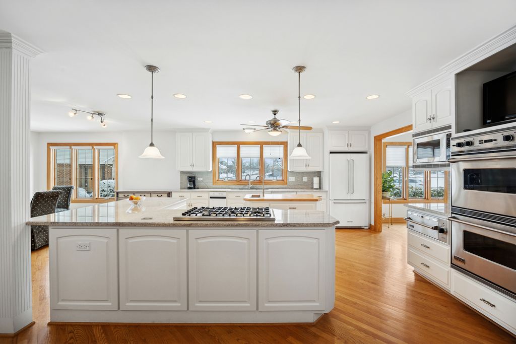 Welcome to this beautifully maintained first floor primary suite townhome in the prestigious Kensington Estates 1 of Lemont where comfort, elegance, and convenience come together in one exceptional residence. This stunning home features a main level primary bedroom suite plus three additional bedrooms, two on the second level and an optional fourth bedroom or office in the finished walkout basement. The expansive 18' x 31' kitchen and dinette is an entertainer's dream, seamlessly connected to the inviting family room with a fireplace and large windows offering serene pond views. The kitchen includes upscale appliances, custom cabinetry, a generous island with power, and a convenient prep sink ideal for cooking and entertaining. Convenience is unmatched with two laundry areas, a spacious main level laundry with cabinets, sink and large closet, plus a second washer/dryer and sink in the finished walkout basement. The primary suite offers a spacious bath with a large separate shower and soaking tub. Upstairs you'll find a bright loft area, two well-sized bedrooms, a full bathroom, and a large walk in attic providing exceptional storage. The finished walkout basement expands your living space with a well appointed kitchenette area, sink, refrigerator and storage, perfect for guests or entertaining. A full bathroom, a walk-in tub, and substantial storage with built-in shelving finish out the basement space. Outdoor living is impressive with both a deck and patio, perfect for quiet mornings or sunset views overlooking the water. The deck also features a built-in Weber grill with gas hookup and mainteance free decking. 2 car garage with heated floors, complete with hot and cold water hookup, a floor drain, and an epoxy finished floor. The entire home has been freshly painted in a warm neutral palette and the property includes numerous mechanical and quality upgrades throughout. A few being newer roofs, new hot water heater-2025, brand new ejector pump, heated floors in master bath, basement and garage. Ideally located minutes from Cog Hill Golf Course, shopping, dining, and top-rated Lemont schools, this home offers luxury living with unbeatable convenience.