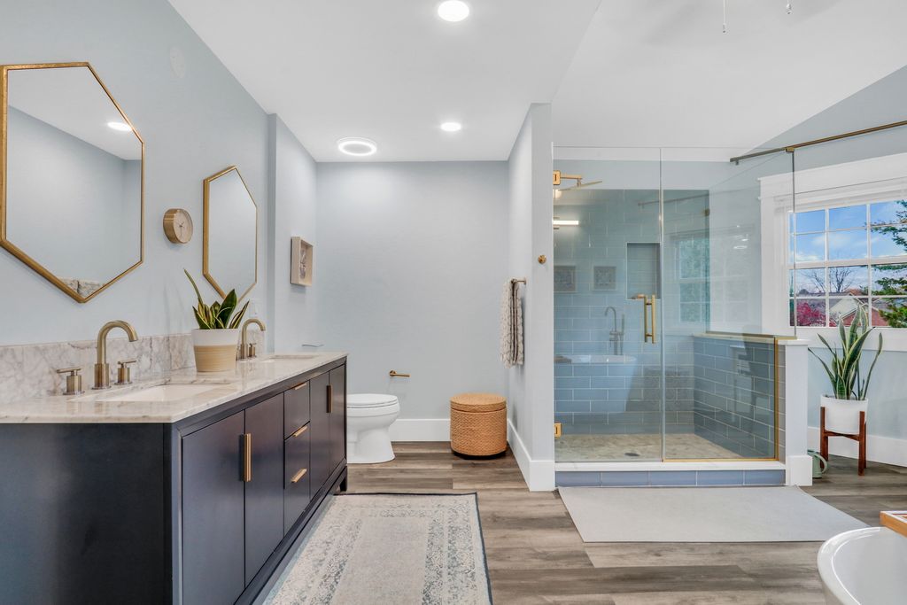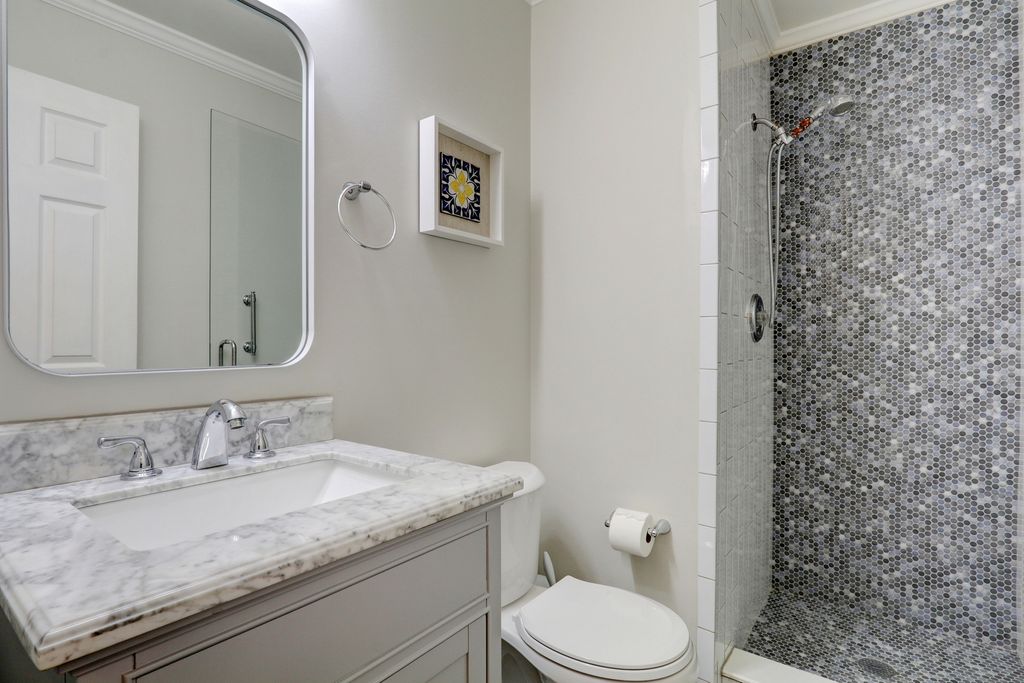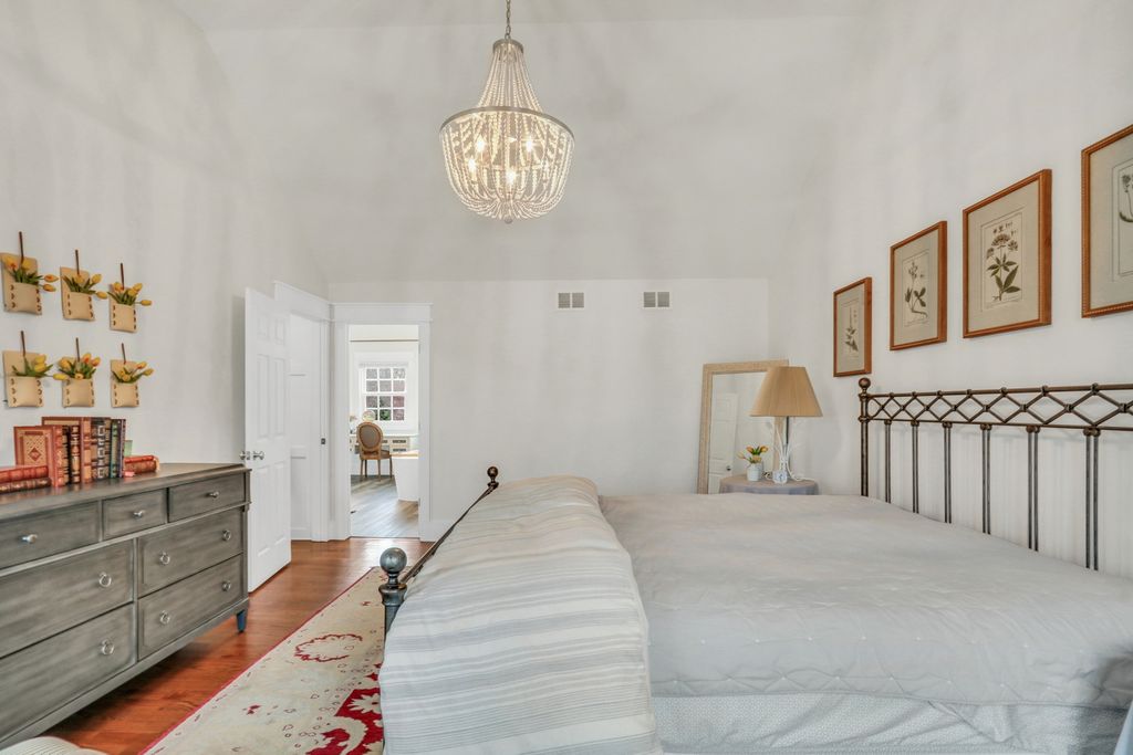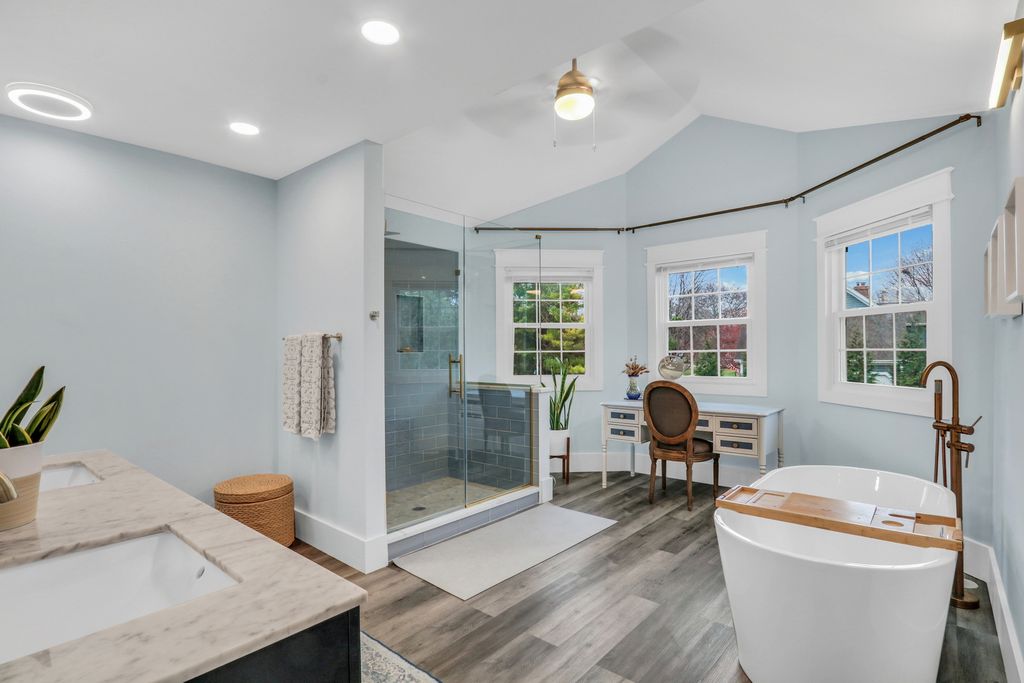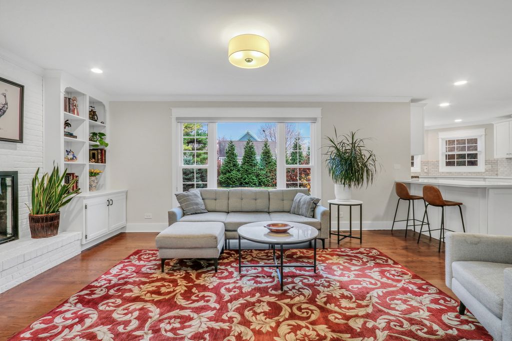 Welcome Home to this stunning residence in the highly sought-after Brookside community! Perfectly situated on a beautiful 1/2-acre corner lot, this home welcomes you with a charming, oversized front porch that sets the tone for everything that follows. Step inside and fall in love with the bright, open layout featuring gleaming hardwood floors, elegant wainscoting, an abundance of natural light, and impressive spaces designed for effortless entertaining. The formal living room offers a warm and inviting place to gather, opening seamlessly into the spacious family room where you'll find floor-to-ceiling windows, a cozy brick fireplace, and custom built-ins that elevate the room's style and function. The updated kitchen is truly a dream-complete with crisp white cabinetry, a stylish backsplash, stainless steel appliances, quartz countertops, and a generous center island perfect for meal prep or morning coffee. The comfortable eating area flows directly to the back deck, making indoor-outdoor living a breeze. The main level also features a convenient laundry/mudroom with stackable washer and dryer, plus a fifth bedroom ideal for a home office or overnight guests, along with a beautifully updated full bathroom. Upstairs, retreat to the impressive Primary Suite, boasting hardwood floors, a spacious walk-in closet, and a gorgeous updated en suite showcasing a large glass-enclosed shower, stunning tile work, a double-sink vanity, and a relaxing soaking tub. Three additional generously sized bedrooms-all with hardwood floors-and an updated full bathroom complete the second level. The finished basement provides a fantastic recreational space along with abundant storage options. From top to bottom, this home is filled with charm, comfort, and thoughtful updates. A true Brookside gem-ready to welcome you home!