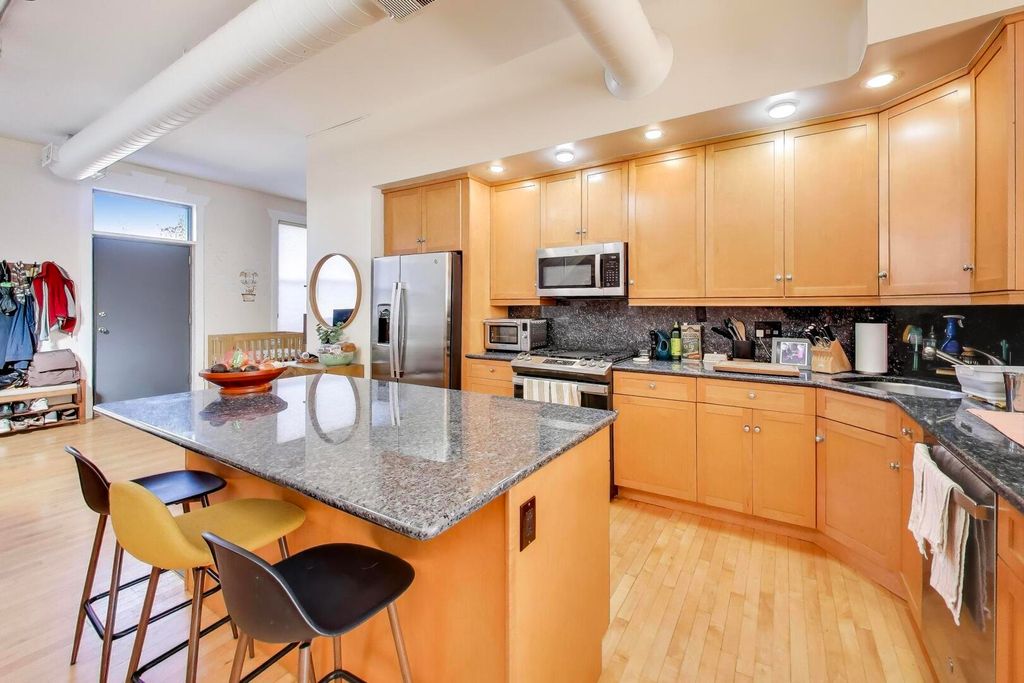 Dramatic and unique loft in exciting Riverwest Spacious and airy w/high ceilings,light filled rooms, new kitchen appliances with granite countertops,island and SS appliances,hardwood floors,sectioned off bedroom and office space,in unit W/D and suround sound,private rooftop deck with wired speakers and amazing city scapes!Minutes from transp,expwy,shops,restaurants,1 parking space included.Come see what it's all about