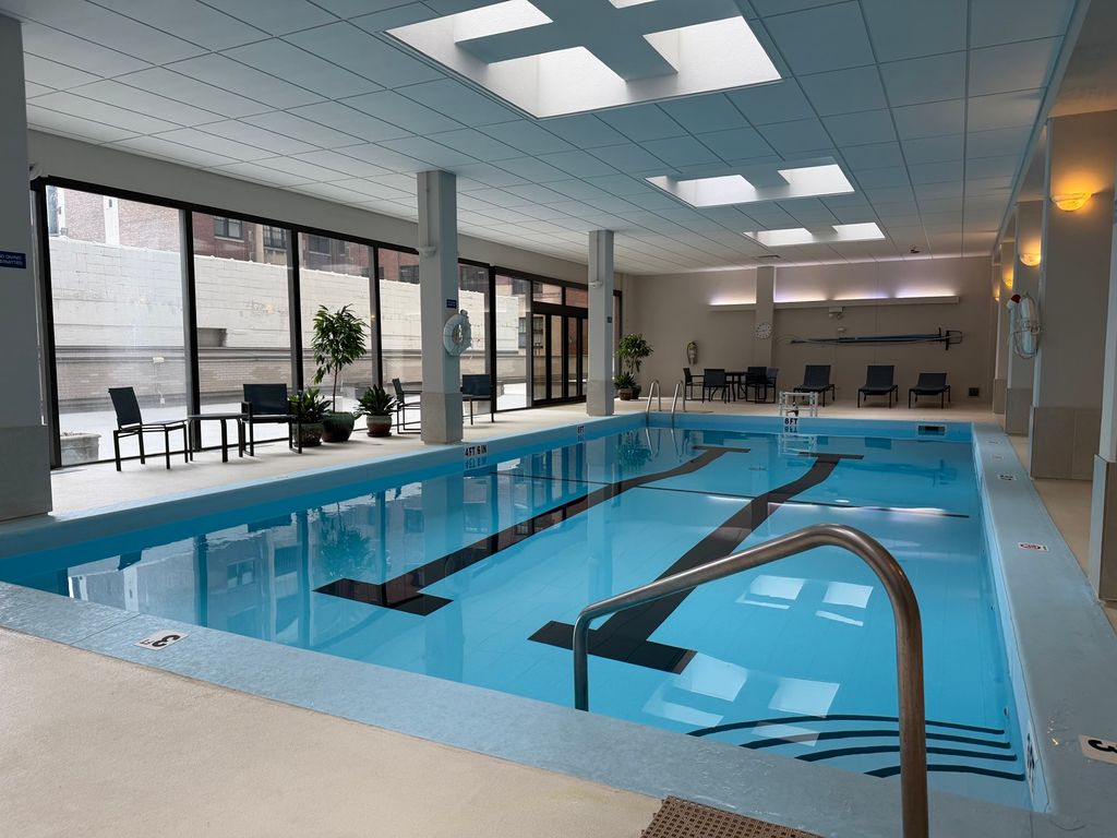3200 N Lake Shore #604 is a beautifully updated, east and west-facing two-bedroom, two-bath home featuring timeless finishes, a unique layout with a classic sunken living room, dedicated dining area, private balcony that showcases the stunning sunrises over the lake, and a spacious en-suite bedroom. The pass-through galley kitchen has been tastefully updated with warm greens and blues that complement the colors reflecting from the lake. Enjoy the convenience of in-unit laundry, plus a large laundry room in the building. Set in a full-amenity building with a fitness center, pool, sundeck, and 24-hour door staff, it offers easy access to lakefront trails and a quick commute downtown-an ideal blend of comfort, convenience, and Chicago charm. Valet parking available for $274/month.
