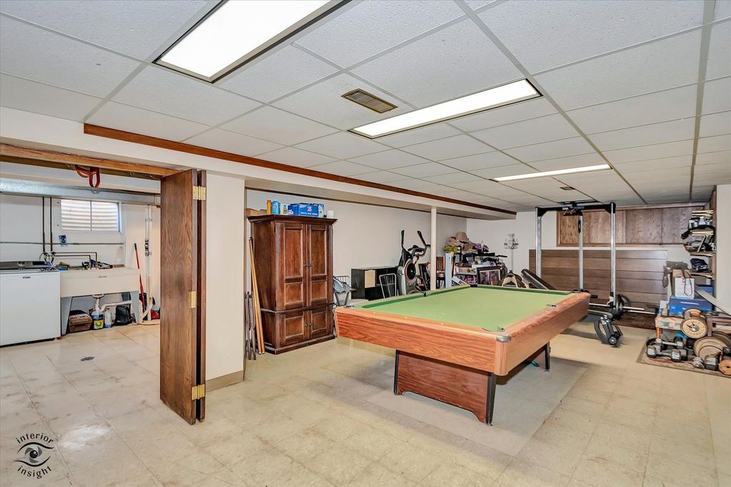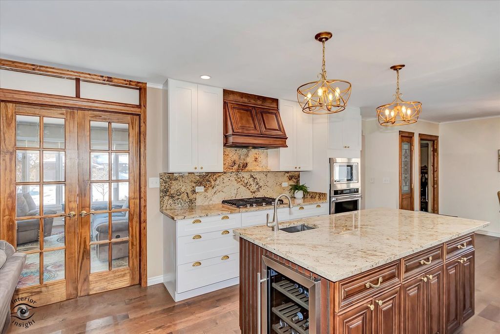 Beautifully remodeled sprawling Brick Ranch! Hard wood floors throughout, Open concept & move in ready! Huge granit eat at Island, Granite countertops, beverage fridge, Custom 42" cabinets, Pantry around fridge AND closet, Double oven, & Breakfast nook in your Lavishly appointed kitchen! Family room with gas fireplace. Bay windows, w/ custom Roller shades. Bathrooms have tile surrounds, walk in shower, and Jacuzzi tub. Relax on you over sized back patio (25x11) & extra patio for tools & storage. Professionally Landscaped, 2.54 car Garage with workbench and storage space. Finished basement with Laundry, abundance of storage, & Kitchenette- can be used for related living! Pool table stays