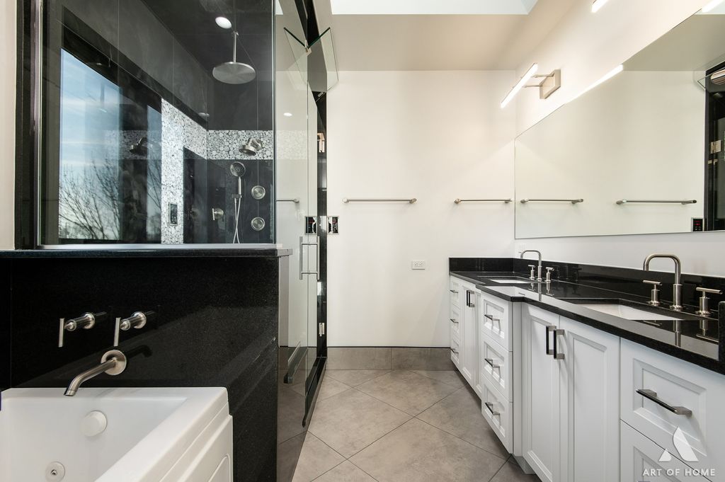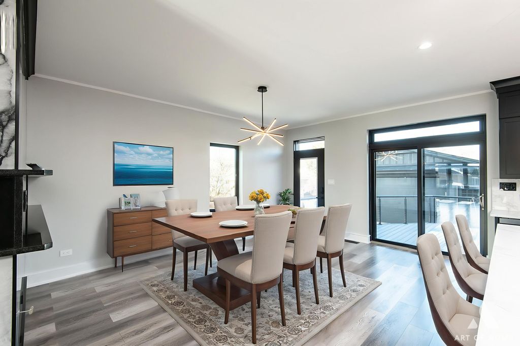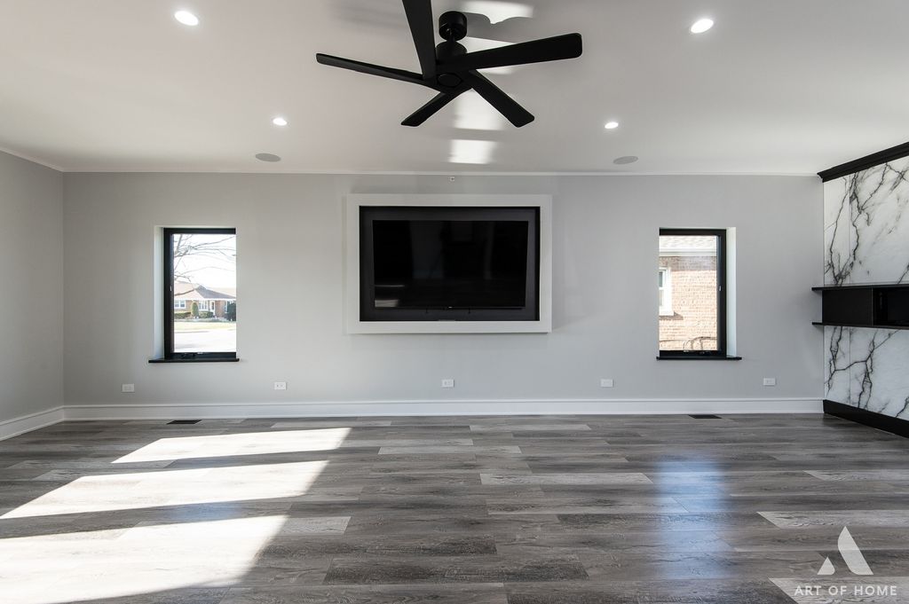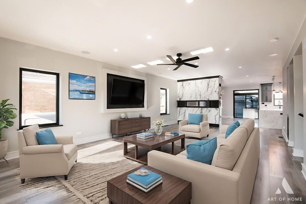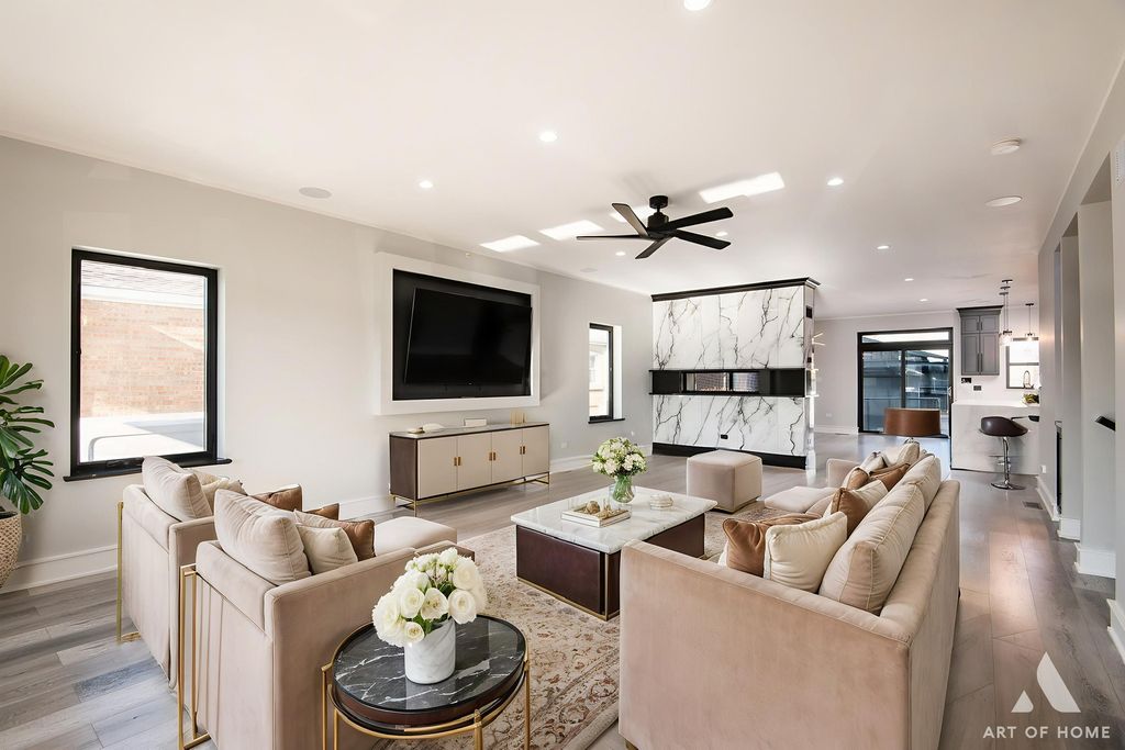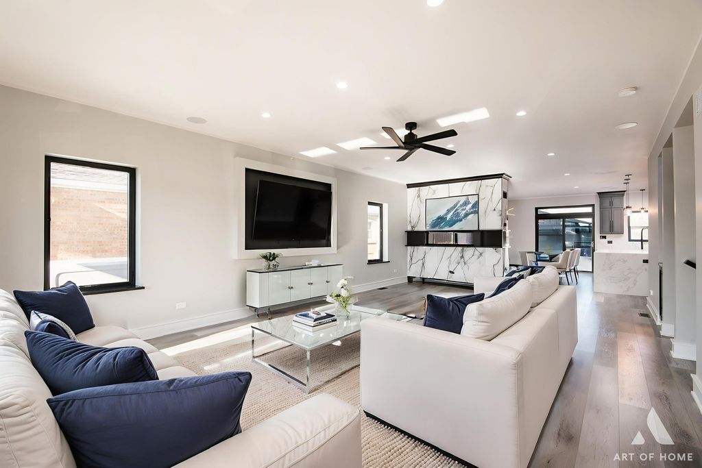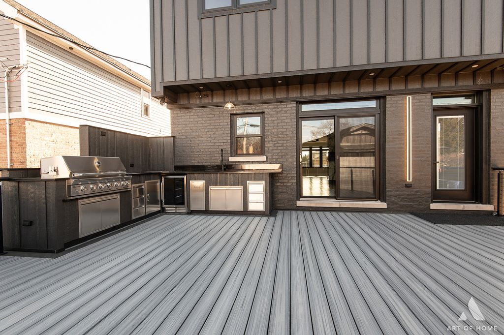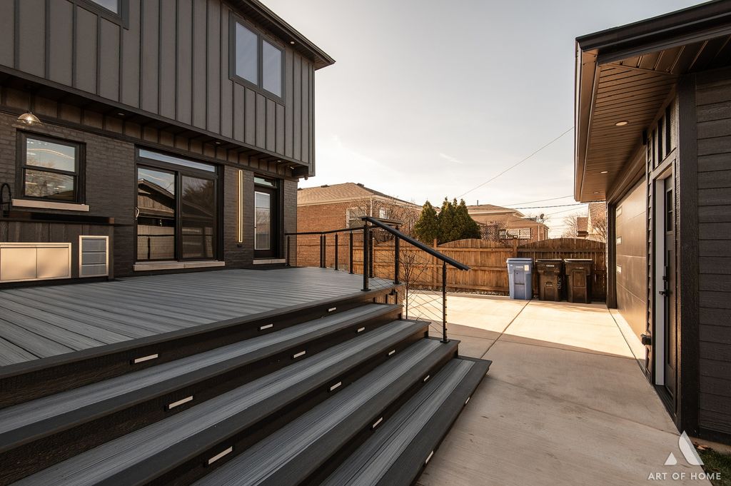 Stunning, state-of-the-art home offering three levels of luxurious modern living. This beautifully rebuilt smart home is fully security-wired and equipped with the latest technology and thoughtful upgrades throughout. The open-concept main level features 9-ft ceilings, a striking two-sided fireplace, a sleek modern kitchen, and a spacious walk-in pantry-perfect for everyday living and entertaining.The second level also boasts 9-ft ceilings and includes a spacious primary suite with a gorgeous en-suite bath, two additional bedrooms, and a beautifully finished full bathroom.The lower level offers exceptional flexibility with a fourth bedroom and full bath-ideal for guests, related living, or a private home office.Total: 4 bedrooms and 3.1 baths.Enjoy the convenience of two laundry rooms, each equipped with washers and dryers. TVs are installed on 2 level's, and the home showcases premium European-style entry and interior 7" doors, along with high-end contemporary finishes throughout.Step outside to an entertainer's dream: a composite deck with a full outdoor kitchen featuring a gas grill, beverage refrigerator, and stainless steel appliances-perfect for summer gatherings.Additional highlights include zoned heating and cooling, and a spacious 24' x 24' garage with an 8-ft overhead door.Truly a perfect "10"-a beautifully rebuilt, fully smart home designed for comfort, style, and effortless living.