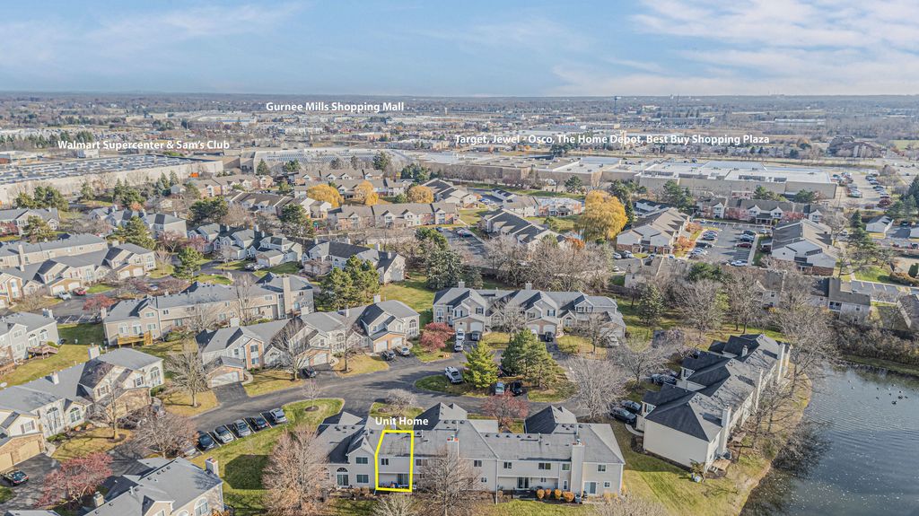 Gorgeous condo in the desirable Stonebrook subdivision! Step into an inviting living space with vaulted ceilings, a beautifully updated kitchen featuring abundant cabinetry, granite countertops, and stainless steel appliances. A sliding glass door leads to a charming deck-perfect for morning coffee, grilling, or entertaining guests. Freshly painted in modern, neutral tones throughout. The primary bedroom offers double closets and access to a tastefully remodeled shared bathroom. Cozy evenings await by the elegant marble fireplace. Countless updates add comfort and style. Ideally located in vibrant Gurnee, IL-home to premier attractions such as Six Flags Great America, Gurnee Mills Mall, and world-class dining and entertainment options. Enjoy quick and easy access to major highways, including I-94 and Route 41, making commuting to Chicago or Milwaukee a breeze. A perfect blend of comfort, convenience, and lifestyle!
