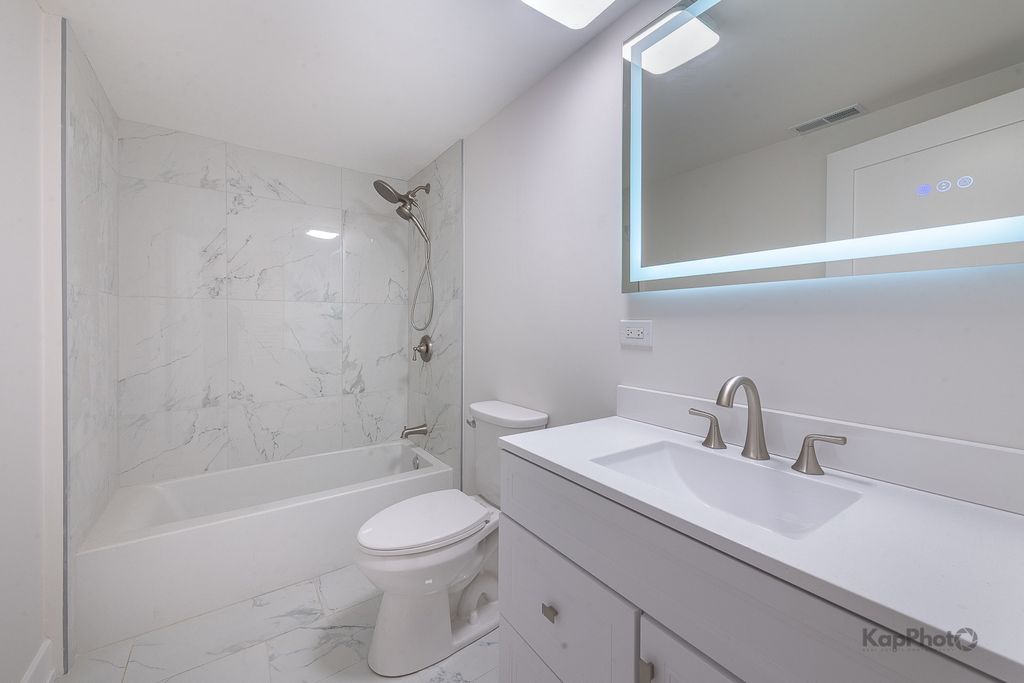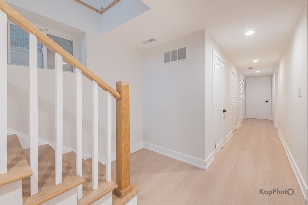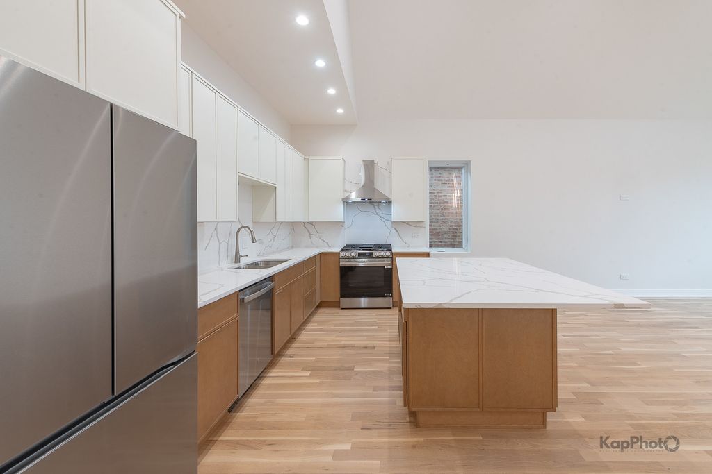 The transformation is now complete! This fully renovated and thoughtfully designed 4 bed / 2.5 bath single-family home offers exceptional curb appeal with a stately facade that sets the stage for the sophistication within. A gracious foyer welcomes you into a dramatic great room boasting 14-foot ceilings and 3.25" white oak hardwood floors, creating an immediate and lasting impression. The ideal floor plan features two bedrooms on the main level and two on the lower level, perfectly balancing function and flexibility. The chef's kitchen showcases two-tone cabinetry, a large center island, LG/GE Profile stainless steel appliances, and sleek calacatta Quartz countertops. A hallway leads to the primary suite, an additional bedroom, a powder room, and access to a spacious rear deck and backyard with fresh sod-ideal for outdoor dining or relaxation. The primary suite offers ample closet space and a luxurious bath with a walk-in shower, Kohler fixtures, glass shower panel, and designer porcelain tile. The expansive lower level is perfect for entertaining or unwinding, complete with a large family room, recessed lighting, storage, and more. This level also includes two additional bedrooms, a full bath, a laundry area, and a mechanical room. This home isn't just stunning, it has great bones with features that include a brand new 2-car garage, drain tile with waterproof membrane, new concrete slab, tankless water heater, new 200 amp electrical service, new plumbing systems, spray foam insulation, new windows by Lang, new furnace, 2-ton condenser, new gas service and meter, 5.25" baseboards, custom lighting throughout, new fencing, and so much more. Perfectly located in the heart of Bridgeport, just steps Joseph T. McKeon Jr. Park, Guaranteed Rate Field, local shops, restaurants, and so much more. This home truly combines modern luxury with neighborhood charm.