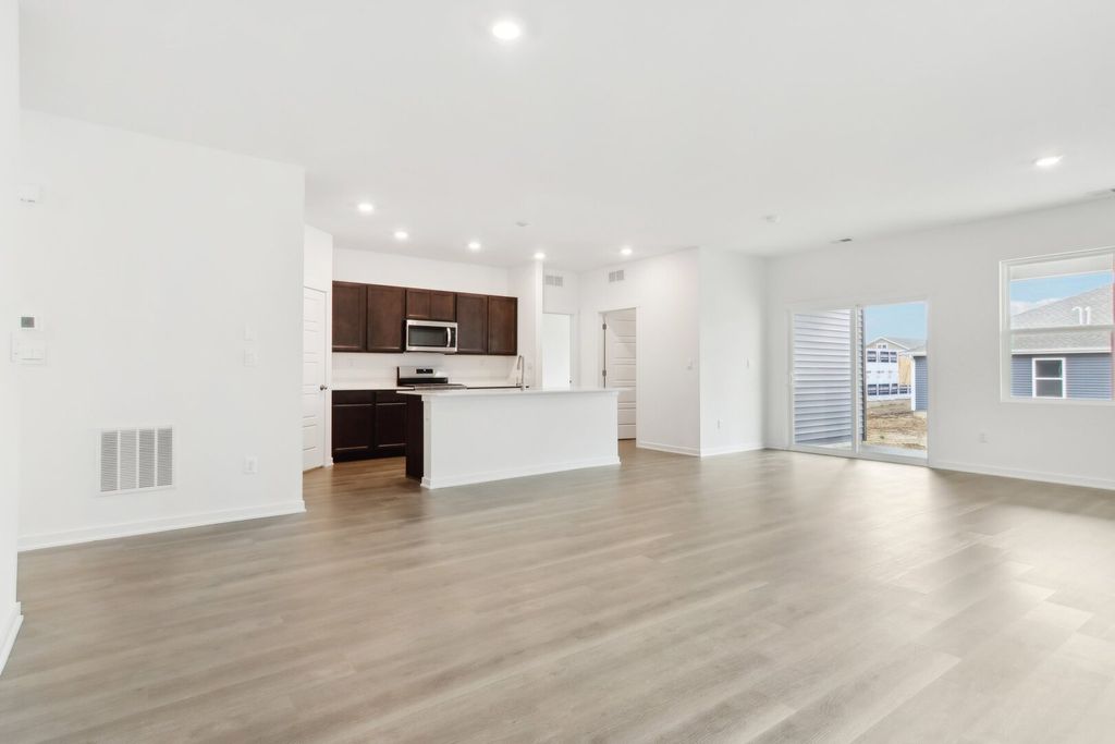 Envision yourself at 2458 Plains Dr in Pingree Grove, Illinois, a beautiful new home in Cambridge Lakes North. This ranch home will be ready for a winter move in. This homesite includes a fully sodded yard and covered back patio. Guests will be greeted by a beautiful front porch! This Clifton plan offers 1,863 square feet of one-level living space with a flex room, 2 bedrooms, 2 bathrooms, 9-foot ceilings and amazing closets! When you first enter the home, there is a secondary bedroom and full bath with closet space. Next, you'll come upon the open flex room, excellent for an office, game room, formal dining room, guest area or a hobby room. From there, you will enter the open concept great room and dining area that flow into the heart of the home, the kitchen. The kitchen layout focuses on a large island with an overhang for stools, Quartz counter tops, Walk-in Corner Pantry, stainless steel appliances and designer cabinetry. Additionally, the main floor includes easy-to-maintain Luxury vinyl plan flooring. Escape to your spacious primary bedroom with two, separate, HUGE walk-in closets and en-suite bathroom with a raised height dual sink, quartz top vanity and walk in seated shower with ceramic tile surround. All Chicago homes include our America's Smart Home Technology. Photos are of similar home and model home. Actual home build may vary.