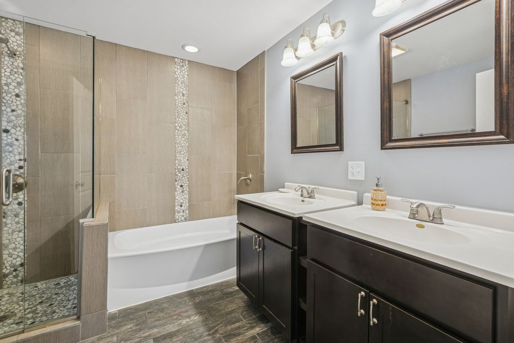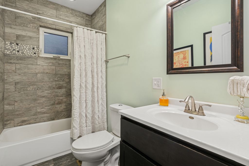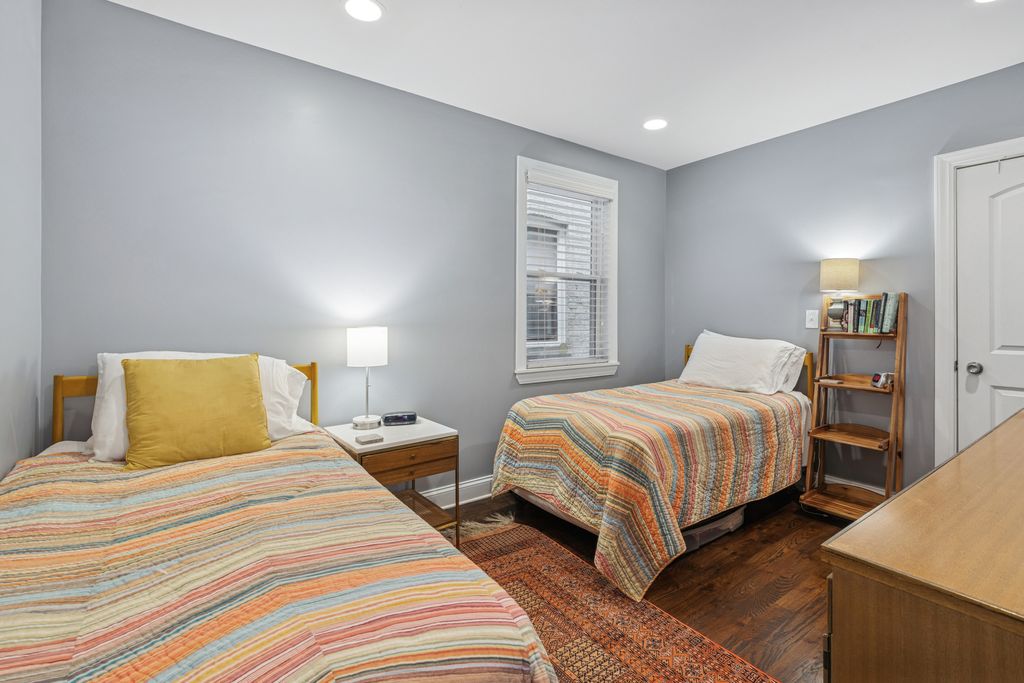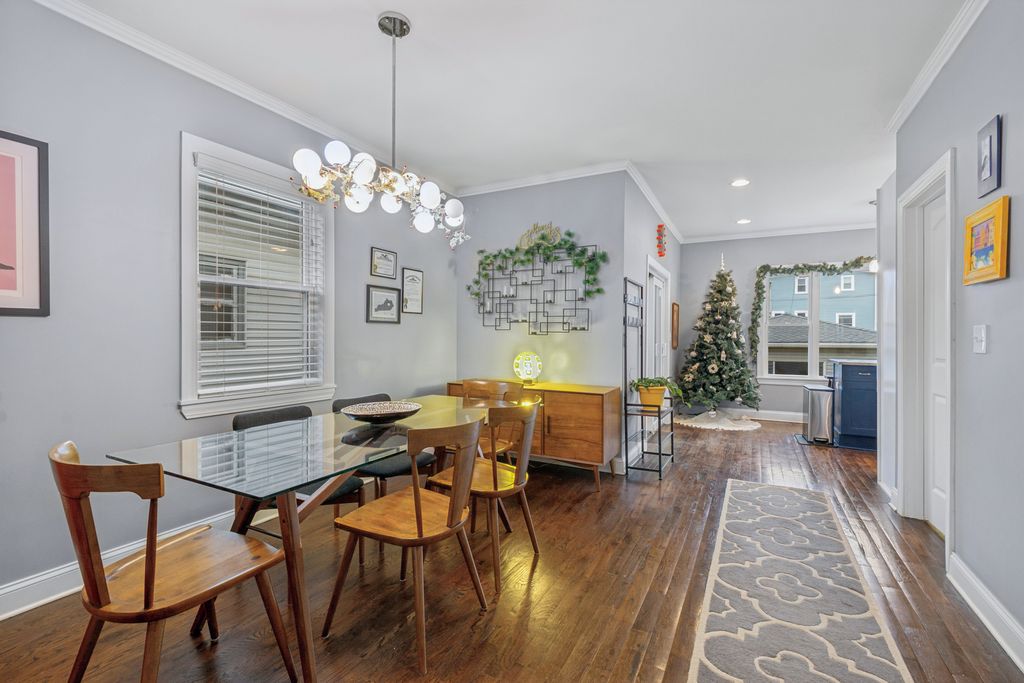 Beautifully updated 5 Bedroom 4 Bath single family home on lovely tree lined street. First level feutures hardwood floors throughout, living room, seperste dining area, kitchen with balcony, stainless steel appliances and quartz counters, a fourth bedroom and full bath. Second level features large primary bedroom suite with hardwood floors two walk in closets, balcony, primary bath with dual vanities, walk in shower and separate tub, two additional good sized bedrooms and full bath. Lower level has large family room, a fifth bedroom, full bath, utility room with full size washer and dryer and a large storage room. Fully fenced yard and two car garage complete this highly desireable home.