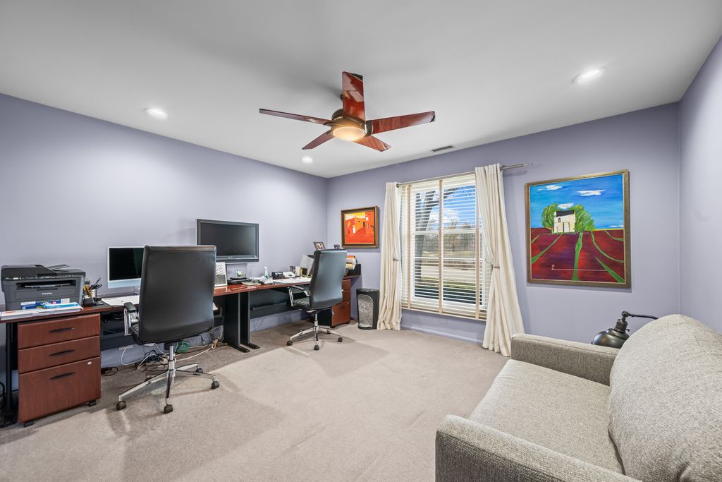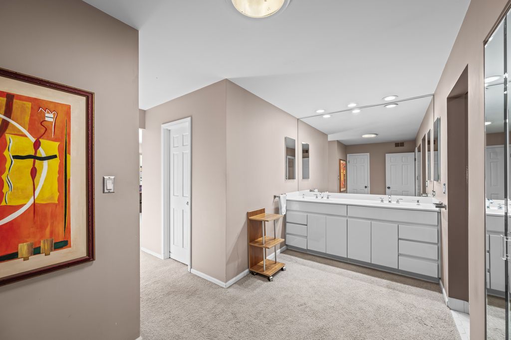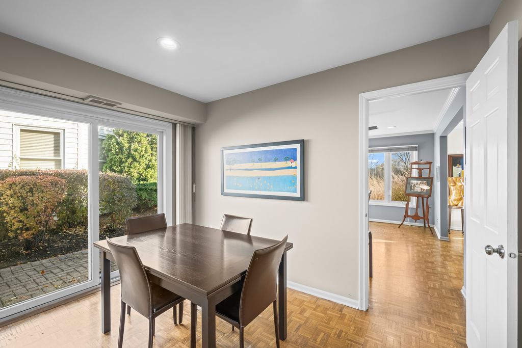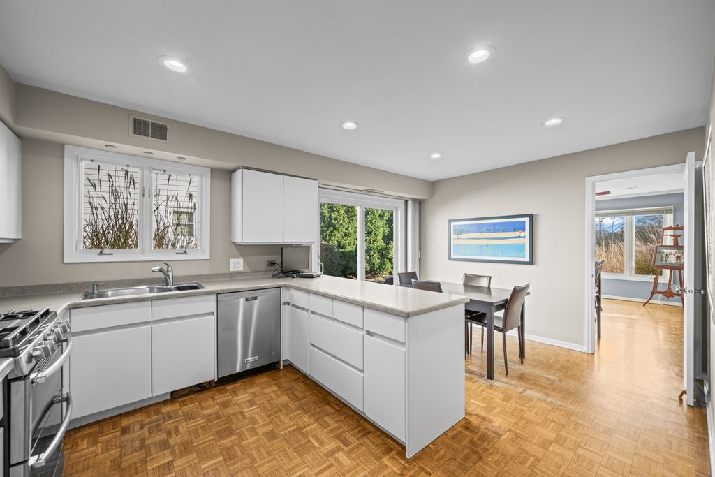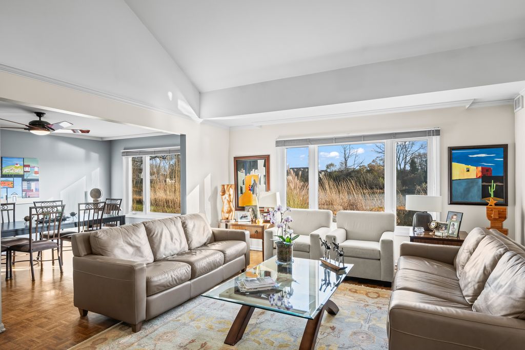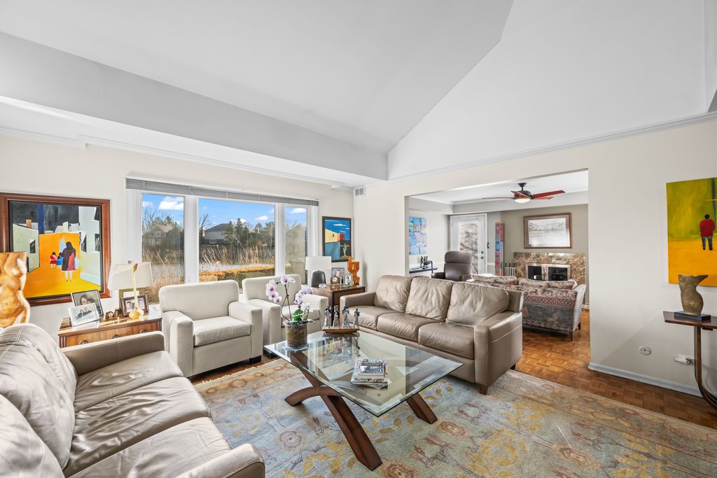Location, location. It's a water front beauty! Discover maintenance free living in this absolutely stunning ranch style home with picturesque water views that sets the tone for serene resort-style living every day, perfectly situated in the gated community of Rivershire. This fabulous light and bright home boasts an open concept design, large welcoming entry foyer, hardwood parquet floors, custom moldings and great views from all the windows. The home boasts an updated eat-in kitchen with high end stainless steel appliances, sub zero refrigerator, white custom cabinetry, solid surface counter tops and a large breakfast eating room with sliders to the patio. The laundry room is conveniently located off the kitchen. Large separate dining room with recessed lighting opens to the family room with soaring volume ceilings and fireplace. Relax in the cozy den with wet bar. The primary suite has two large walk-in closets, bath with dual bowl vanities and shower. Spacious second bedroom with updated hall full bath and an additional powder room off the den. Newer roof and furnace, two car attached garage and two paver brick patios. Enjoy a stroll on the serene walking path or have a game of tennis. Conveniently located near shopping, restaurants and entertainment offered at the Marriott Theater near by.