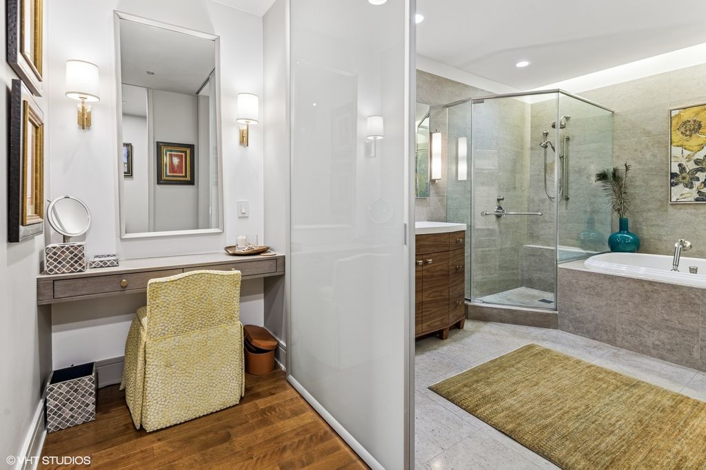 Perched high in one of Chicago's most iconic luxury skyscrapers, this residence embodies sophistication and elegance. The preferred "E" tier layout is prized for its breathtaking panoramic views-stretching from the Chicago River to the lake, then south across Grant and Millennium Parks to the city skyline- giving you amazing sunrises and sunsets! Spanning more than 2,700 square feet, this home features two beautifully designed bedroom suites, a den with striking vistas, an upgraded chef's kitchen, and a gracious living/dining salon anchored by a marble-clad fireplace. The reimagined kitchen offers sleek custom cabinetry, top-tier appliances (including an ice maker and beverage fridge), quartz and live-edge wood countertops, and abundant storage. In the private wing, both bedroom suites provide serene retreats with stunning sunset views. The primary suite showcases a spacious bedroom with a second fireplace, dual walk-in closets, additional storage, and a luxurious stone-clad spa bath. Additional highlights include wide-plank wood flooring throughout, fully organized closets, motorized shades, and refined designer finishes. Residents enjoy five-star hotel amenities: 24-hour staff, a world-class pool, fitness center, spa, in-room dining, and a seasonal outdoor deck perfect for soaking in the city's vibrant energy. Parking for 3 vehicles is included-one tandem and one single. Experience the best of luxury living in the heart of downtown Chicago, with world-class dining, shopping, and entertainment just outside your door.
