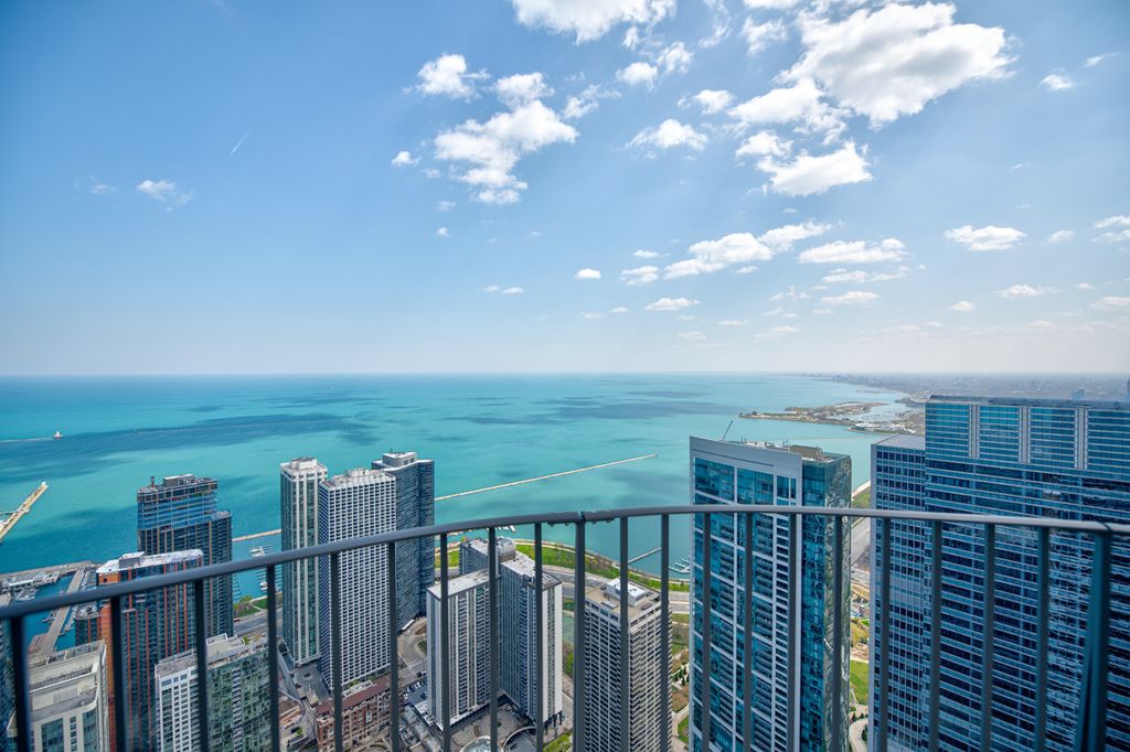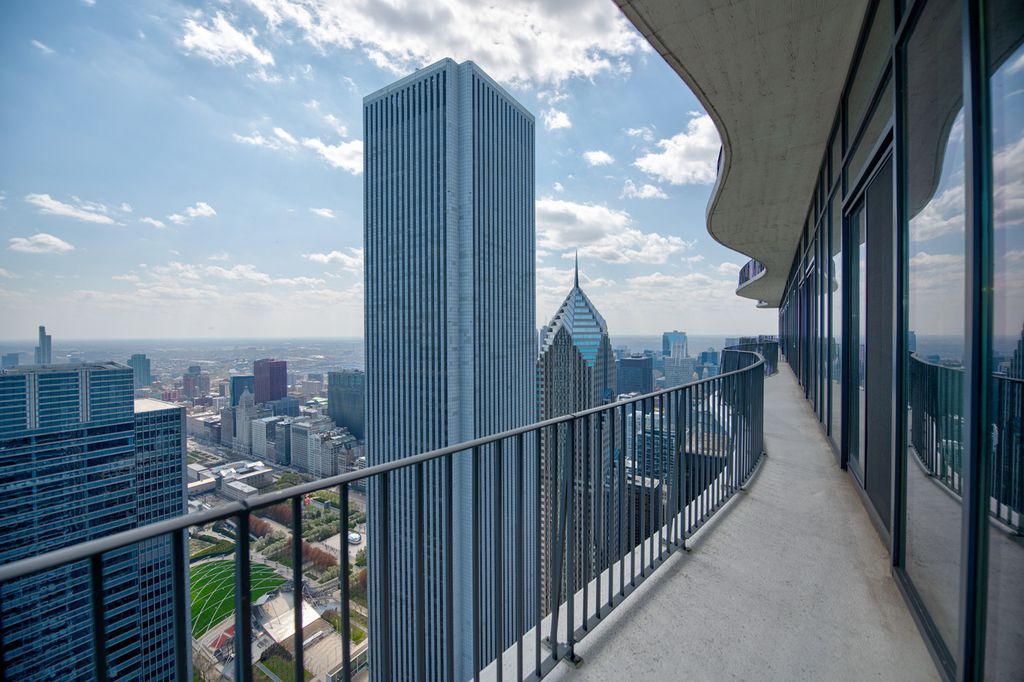 Penthouse Level-Outdoor Space: Experience breathtaking views of the lake and city from an 80th-floor penthouse in Chicago's iconic Aqua Tower. Designed by award-winning architect Jeanne Gang, the building features distinctive, gently rippling balconies that give the skyscraper its signature sculptural form. This deluxe penthouse in Chicago's Lakeshore East - New Eastside rises to the 80th floor, offering breathtaking, unobstructed views from a wrap-around balcony accessible from every room. Thoughtfully designed through the combination of two units, it showcases stunning South and East exposures. Floor-to-ceiling windows paired with 11-foot ceilings create a mesmerizing sense of space throughout this 3,500-square-foot residence, enhanced by 133 linear feet of balcony overlooking the city of Chicago and Lake Michigan in an ideal SE corner, almost 1/4 of the entire top floor. Interior: Sliding glass and screened doors lead from every room to the balcony. The home offers graciously sized rooms, including four bedrooms and three baths. Two bedrooms have been skillfully retrofitted-one into a fully equipped in-unit gym featuring a dry sauna, and the other into an office/library. The kitchen is appointed with custom cabinetry, premium granite, and top-tier appliances from Wolf, Sub-Zero, and Miele. The Primary Bedroom Suite includes an oversized Jacuzzi spa tub, separate walk-in shower, private lavatory, and an expansive, custom room-sized closet. A private ensuite guest wing features its own entrance, accessible both from inside and outside the unit. Additional highlights include an oversized laundry room with a side-by-side washer and dryer, electronic mesh shades with programmable settings, block-out blinds in the primary suite, and multiple oversized, well-organized walk-in closets throughout. Garage-Amenities: The residence includes a single oversized to double-width garage space, comfortably accommodating two cars side-by-side, located nearest the elevator. Additional deeded garage spots are available for purchase. Residents enjoy full access to building amenities: a state-of-the-art fitness center, indoor and outdoor pools, a basketball court, a one-fourth-mile running track, and a sundeck with cabanas. The building is also connected to the Pedway, offering convenient access to nearby attractions. Ideally situated just steps from Millennium Park, Michigan Avenue, and the lakefront, it places the best of Chicago right at your doorstep. Experience: Upon entering, this penthouse speaks Royal. A rare find in any major city, this is an ideal full-time home or a home away from home. A must-see to appreciate fully. Available furnished or unfurnished for immediate possession.