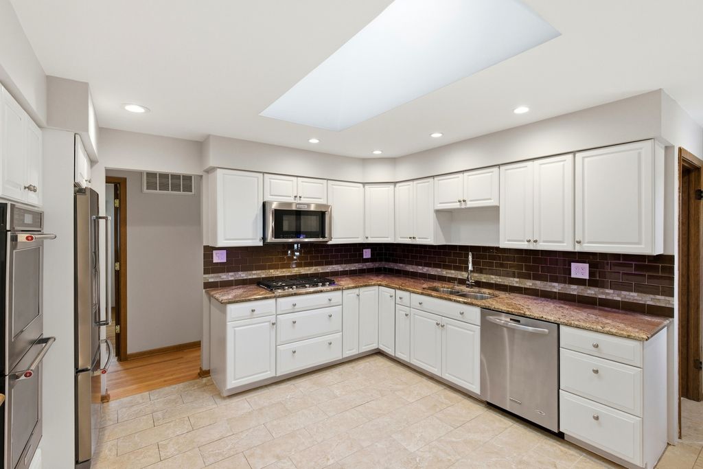 Move-in ready and beautifully remodeled, this stunning all brick and stone 4-bedroom, 3-full-bath ranch has been thoughtfully updated from top to bottom, and is situated in the highly coveted Brookwood subdivision of Wood Dale! From the moment you arrive, you'll notice the care that's gone into this home, creating a welcoming first impression: newer roof, professionally maintained landscaping, landscaping lights. Step inside to find a bright, inviting interior featuring newer premium fiberglass entry doors with keypad entry deadbolts, newer storm doors and Anderson casement insulated windows. The entire home has been freshly painted. The spacious living room is the perfect setting for gatherings and flows seamlessly into the large dining room, ideal for hosting family events. The living room has new recessed lighting for a warm, modern ambiance. The gorgeous eat-in kitchen - accessible from both the living and dining rooms - is a true showpiece. It features newer KitchenAid appliances (refrigerator, stovetop, dishwasher, double oven, microwave), updated cabinetry, including glass-front cabinets with interior LED RGB lighting, under-cabinet lighting (phone app - or remote-controlled), newer backsplash, newer garbage disposal, updated LED recessed lighting, and an operable skylight that fills the space with natural light. Just off the kitchen, the comfortable family room offers a beautiful gas/wood-burning fireplace, new ceiling fan, and new recessed lighting. Adjacent to this area is a convenient space perfect for an optional second laundry setup - no need to head to the basement, as a washer and dryer would fit with ease! Retreat to the spacious primary suite, complete with a fully updated ensuite bathroom featuring new anti-fog mirror, double sink vanity, countertop, shower plumbing, 3/8 glass frameless shower door, toilet, and a solid surface shower stall with seat. Two additional generously sized bedrooms each include new ceiling fans and new closet lighting. The hall bath impresses with an exhaust fan, LED recessed lighting, and highly desirable walk-in whirlpool tub/shower combination, which could easily be converted into a standard tub. The impressive basement won't disappoint! An exceptional, fully finished basement perfect for multi-generational living, an in-law arrangement, or a dream teen retreat! A kitchenette could easily be added in the oversized laundry room for added convenience. This expansive lower level features: *A large recreation room with new stairway, new recessed lighting, and new LVP flooring *A private bedroom with walk-in closet, new recessed lighting, updated electrical panel with new sub-panel, and new LVP flooring *A brand-new full bathroom with recessed lighting, supplemental heat, new shower, toilet, vanity, anti-fog mirror, 3/8 frameless shower door, and LVP flooring *A generous laundry room with newer Maytag front-load washer/dryer on pedestals, utility sink, cabinetry, countertop, and a new frosted door *A utility/storage room equipped with a new water heater, new sump pump, new ejector pump, and newer 90+ Bryant furnace *New windows throughout the basement. Step outside to enjoy the beautiful backyard, complete with a new 12x18 patio, new A/C unit, and fully equipped with a whole-house generator, and hardwired smoke and CO detectors, for the ultimate peace of mind. The detached garage has also been fully updated - new epoxy floors, lighting, newer entry door with keypad, insulated garage door with windows, newer siding. Located close to shopping, expressways, and entertainment, this exceptional home truly has it all. Don't miss your chance - this one will go fast! Make this beautifully updated ranch yours today!