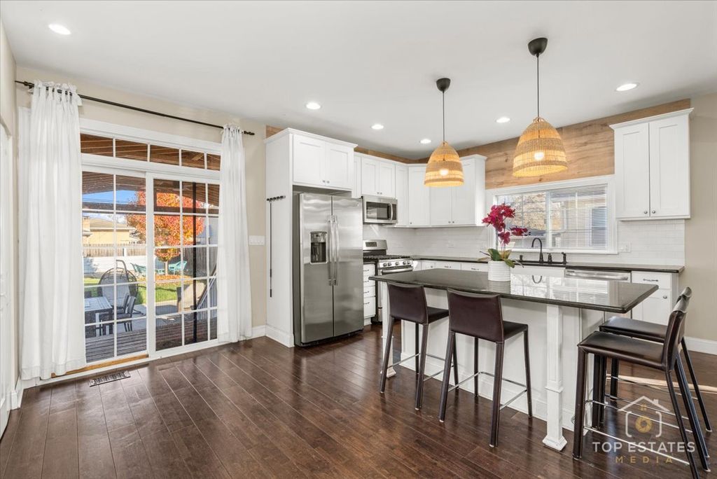 Experience the perfect balance of charm and luxury in this exquisite Blue Island home, where stylish interiors meet an exceptional outdoor entertainment retreat. Completely reimagined with a full second-floor addition in 2015-2016, this 3-bedroom, 2.5-bath residence offers modern comfort, thoughtful design, and impressive living spaces inside and out. Step into a light-filled first level featuring a welcoming front living room with a cozy gas fireplace that flows seamlessly into the shared dining area and a beautifully appointed kitchen. The open-concept layout creates an airy feel enhanced by abundant natural light throughout. The kitchen is the heart of the home, showcasing granite countertops, stainless steel appliances, an oversized center island, and ample cabinetry-ideal for both daily living and entertaining. Upstairs, retreat to a generously sized primary suite complete with a walk-in closet and private en-suite bath featuring a walk-in shower and granite vanity. Two additional bedrooms and a full bathroom with a double vanity provide comfortable accommodations, while a main-level half bath adds convenience. The outdoor space is truly a showstopper. Situated on a rare double lot, this home features a custom-built covered cabana with ceiling fans and retractable screens-perfect for shaded lounging or open-air entertaining. The expansive patio and deck create a seamless indoor-outdoor hosting experience, ideal for gatherings, celebrations, or quiet evenings at home. A fully fenced yard offers privacy and space, plus a storage shed for added functionality. Additional highlights include an unfinished basement ready for customization, updated 200-amp electrical service, and a 50-gallon water heater. Conveniently located near the Metra station and expressway access for easy commuting. This home delivers style, space, and lifestyle. Schedule your private showing today and discover all this beautiful home has to offer. AS-IS sale. No repairs will be made by the seller. Buyer to review disclosures for property condition information.
