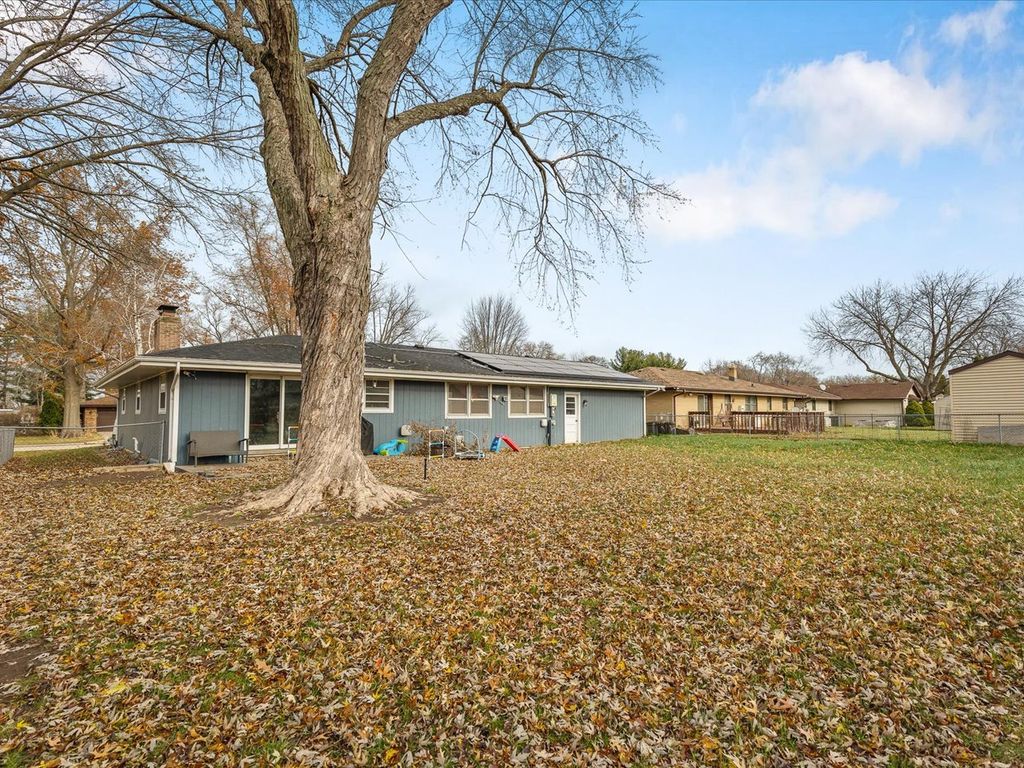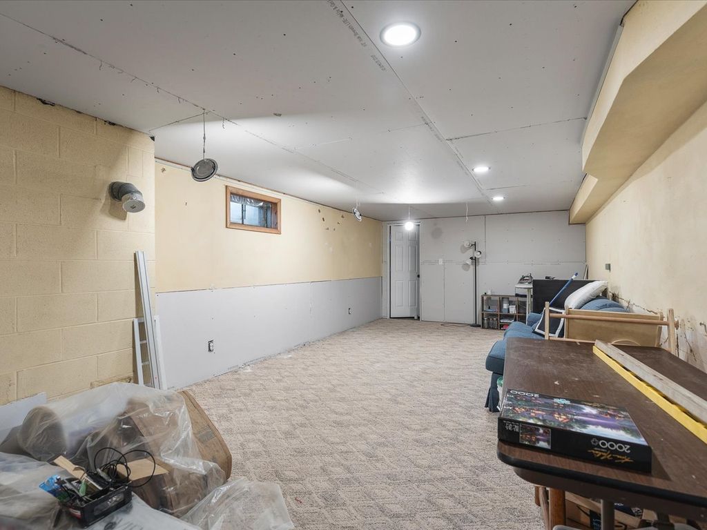 Welcome to this spacious 3-bedroom ranch featuring a fantastic layout and plenty of room to grow. The home offers a huge living room and an open kitchen/dining room combo complete with a cozy fireplace and a sliding glass door that leads to a cement patio within the fenced backyard-perfect for relaxing or entertaining. The large basement adds tremendous potential with a laundry area, a huge rec room ready for your finishing, and two additional rooms awaiting completion. An attached 2-car garage provides convenience and extra storage. A great opportunity to make a solid home your own! Solar Panels are rented from Sun Run
