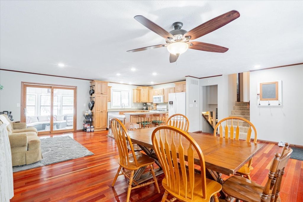 4 bed 2.5 bath home on just shy of an acre! Great for entertaining with a sunroom off the kitchen that opens up to the new oversized patio, additional fire pit area and a privacy fence. Already a gardener, or ever dreamed of having a garden; you will love the garden area! New windows in upstairs and downstairs, main floor are newer too. New Bosch dishwasher, updated half bath, new ejector pit and sump, Generator hook up which you could put in generator or hook up portable. Come enjoy small town living!