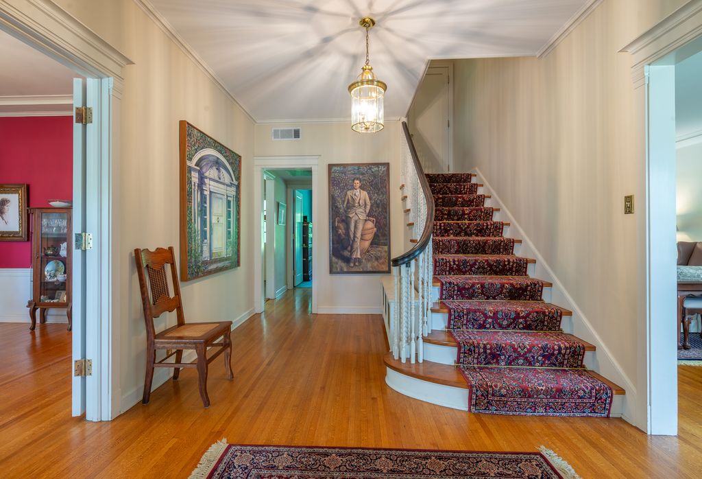 Historic charm meets modern comfort in this timeless Georgian estate in Freeport, Illinois. Built in 1920, this 4-bedroom, 3.5-bath brick masterpiece sits on 1.5 park-like acres surrounded by mature trees, gardens, and private outdoor spaces. With nearly 4,700 finished square feet across four levels, this home perfectly blends classic architecture and modern luxury. Step inside to a grand foyer with original woodwork, a sweeping staircase, and elegant details throughout. The spacious living room features a gas fireplace and sunroom with patio access - perfect for entertaining. A formal dining room connects to the updated kitchen with granite countertops, custom Graybil cabinetry, slate tile floors, and premium appliances. The main floor also includes a private office, half bath, and multiple walkouts to the patio and garden areas. Upstairs, the primary suite showcases a fireplace, walk-in closets, a sunroom, and a fully renovated en-suite bath. Additional bedrooms feature generous space and another beautifully updated bathroom with Italian tile, custom cabinetry, and Kohler fixtures. The third-floor attic and finished lower level offer endless versatility - with a second kitchen, family room, home gym, craft space, and abundant storage. Outside, enjoy the brick-paved patio, stone driveway, and manicured gardens with a secret trail and fern garden. Recent upgrades include energy-efficient windows and doors, dual-zone A/C, a 400-amp service, a radon mitigation system, and a well-maintained clay tile roof. A rare opportunity to own one of Freeport's most admired historic homes - where elegance, comfort, and craftsmanship converge.