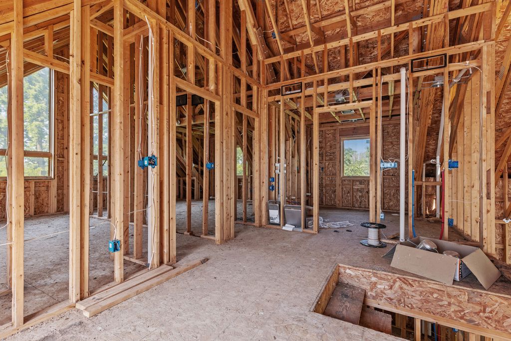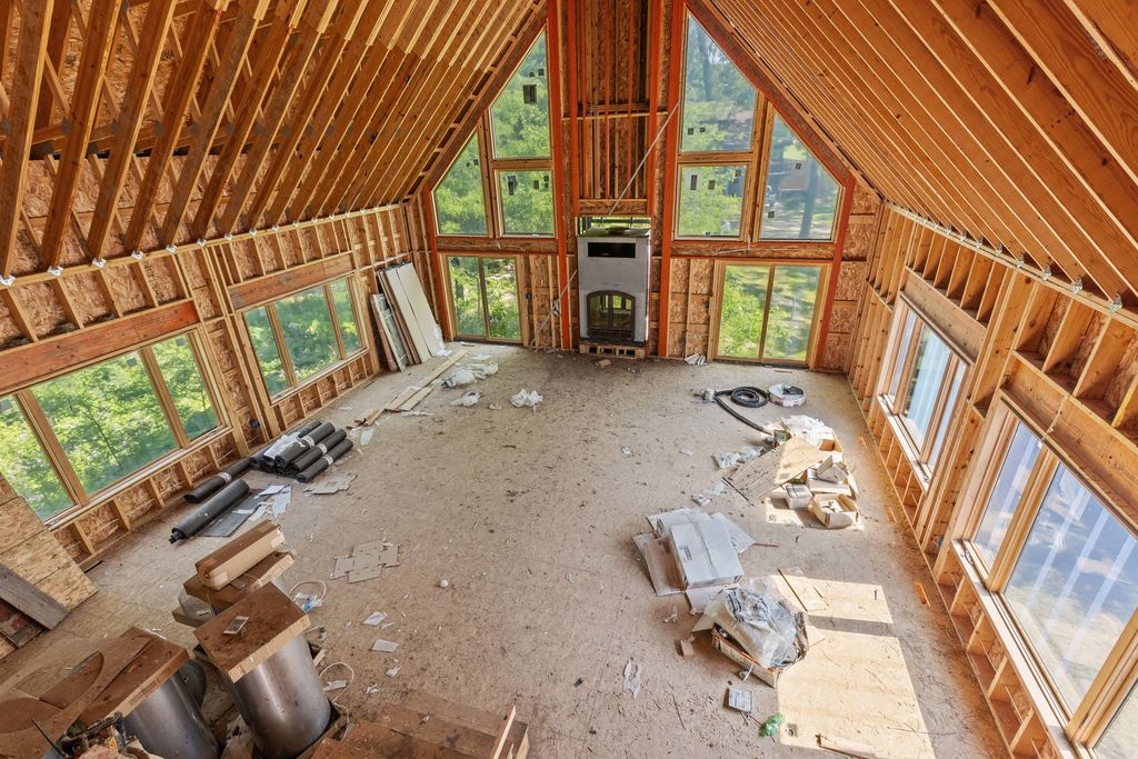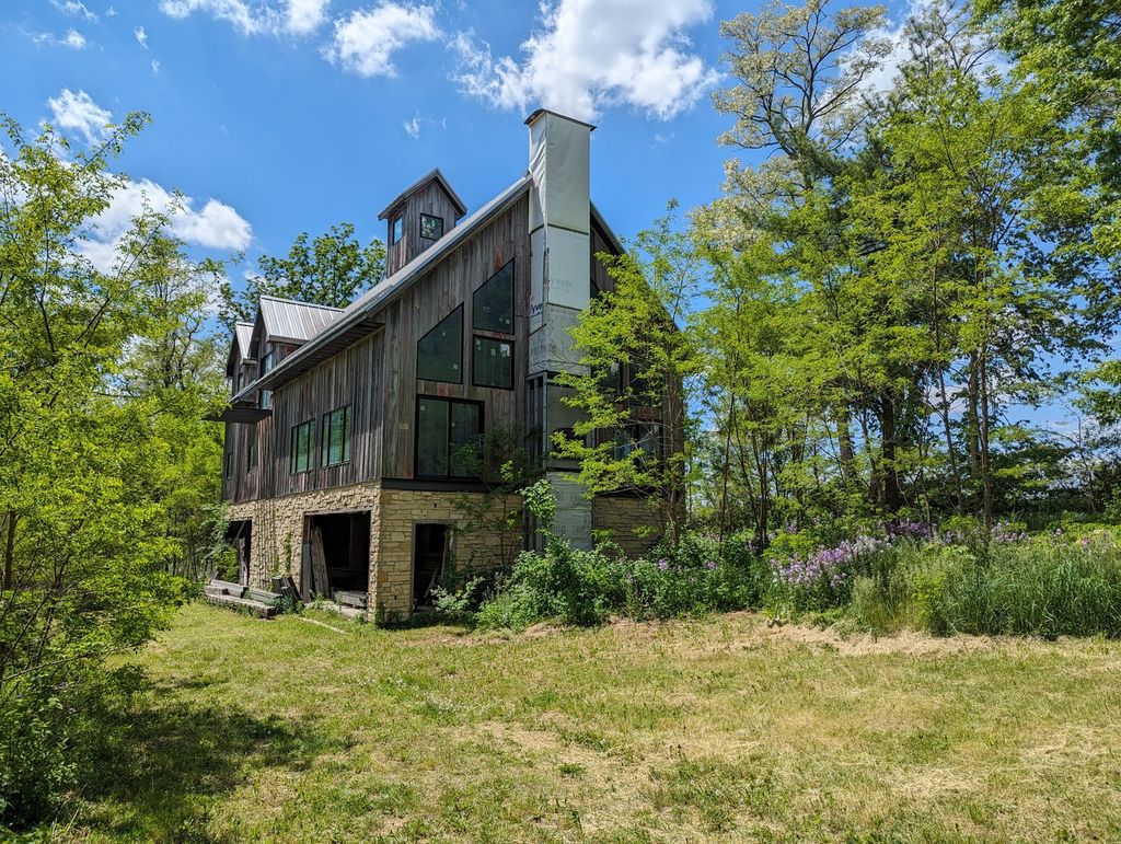 Discover the charm of country living in this under-construction barndominium on 1.06 wooded acres in Freeport, Illinois just 15 mi from Monroe, Wisconsin. Thoughtfully designed with sustainability in mind, this unique home features a geothermal system, plan for in-floor heating, and repurposed materials including barn beams, walnut wood from the property, and reclaimed silo bricks. The main level offers an open-concept great room with a 25-foot vaulted ceiling, a grand wood-burning fireplace, and French doors leading to a future deck overlooking the natural creek. The kitchen space flows seamlessly into the living area, perfect for modern entertaining. The main-floor primary suite includes a walk-in closet with laundry hook-up and space for a luxury bath with a soaking tub and separate shower. Upstairs, find two additional bedrooms, a full bath, and a spacious office with access to a potential upper deck. The lower level provides dual 30'x22' garages, extra storage, a mechanical room, and plumbing for an additional bath. The hard work is complete-now it's ready for your personal touch. Enjoy peaceful country views and the satisfaction of finishing this one-of-a-kind, energy-efficient home your way.