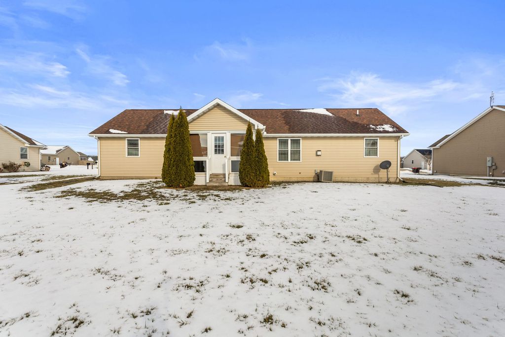 A delightful surprise on Zehr Ln. in Fisher! Desired SPLIT FLOOR PLAN with 3BR, 2BA, 2-Car garage, partial unfinished BASEMENT and,....wait for it.....a 4-SEASON SUNROOM! The Primary Suite offers a Walk-In-Closet and a WALK-IN TUB/SHOWER. The eat-in kitchen centers the house with breakfast bar, dining area and FRENCH DOOR entrance into 4-SEASON SUNROOM with MINI-SPLIT AC & HEAT on South side of house. Very large living room with GAS FIREPLACE can place furniture in countless arrangements. Spare bedrooms share full hall bath. The PARTIAL UNFINISHED BASEMENT provides amazing storage space or finish it out to create even more living space! A unique feature you'll cherish during cold weather is the front porch addition, to keep the cold out and the warmth in. But have no fear, if the power goes out on a cold winter's night, you can stay tucked in while the newer generator kicks in! Newer roof, NEW FURNACE and NEW FLOORING in living room, kitchen, primary bath, foyer and sunroom. Catch it while you can at 307 Zehr Ln!