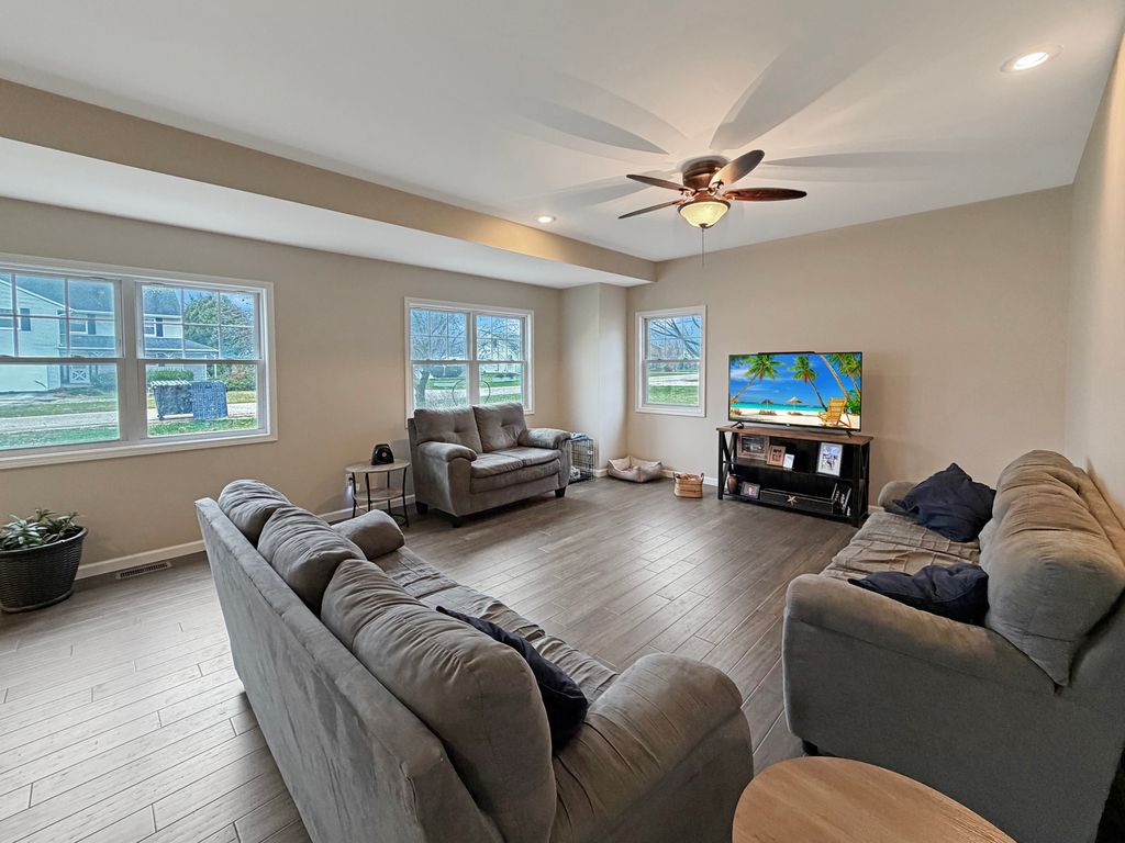 Beautifully Renovated with addition in 2007 - Welcome to this fully updated and move-in-ready home located in the highly desirable Dakota School District. This spacious property features 5 bedrooms and 3 full bathrooms, including two second-level suites-perfect for multi-generational living, guests, or a private work-from-home setup. The primary suite offers a large walk-in closet and an attached tandem room that works perfectly as a nursery, office, sitting room, or dressing area. A second upper-level suite provides added flexibility and privacy. Inside, the home showcases professional updates throughout-modern flooring, new kitchen, updated bathrooms, fresh paint, updated fixtures, and stylish finishes that create a clean, contemporary feel. Every space has been thoughtfully refreshed. Situated on nearly 1/2 acre, the property offers plenty of outdoor space for entertaining, gardening, pets, or future expansion. Whether you're relaxing or hosting, this yard provides endless possibilities. This home is updated, spacious, and beautifully finished-an incredible find in a prime location with a 20' x 24' attached garage plus a 16' x 26' detached garage.