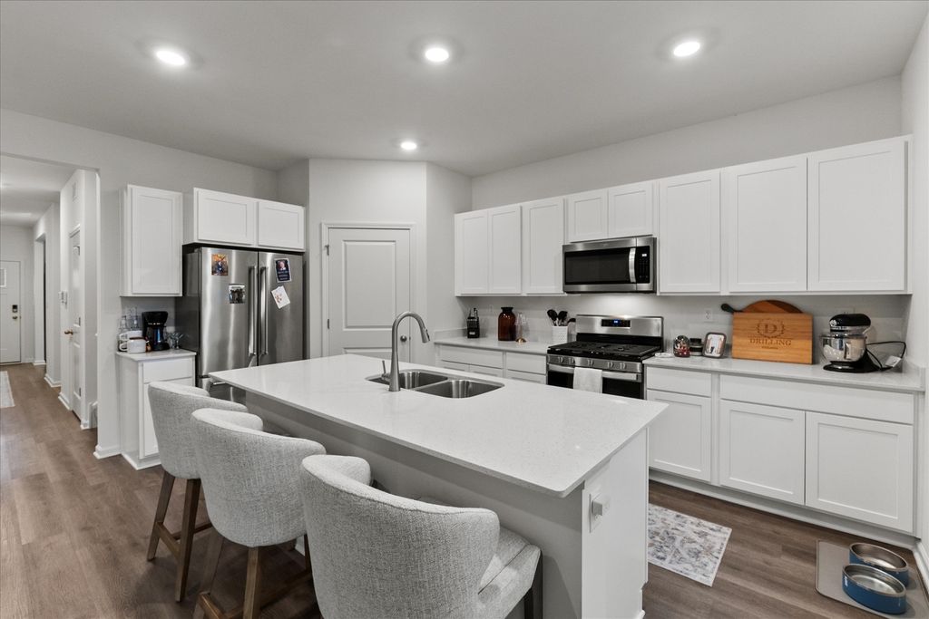 Built in late 2024, this nearly brand-new home offers modern finishes, energy-efficient systems, and a truly move-in-ready interior. All appliances are new and will remain with the property. Only the master bedroom has been occupied; the additional three bedrooms have never been used, keeping the home in like-new condition. This property includes America's Smart Home technology, featuring a smart video doorbell, Honeywell smart thermostat, Amazon Echo Pop, smart door lock, smart light switches, and more-providing convenience, security, and connected living. The home comes with a 5-year builder warranty (4 years remaining) for added peace of mind. Located in a quiet, well-maintained neighborhood with access to a clubhouse offering three pools, this community provides exceptional amenities and quality of life. With pristine interiors, upgraded technology, and a desirable location, this beautiful new build is ready for its next owner to call it home
