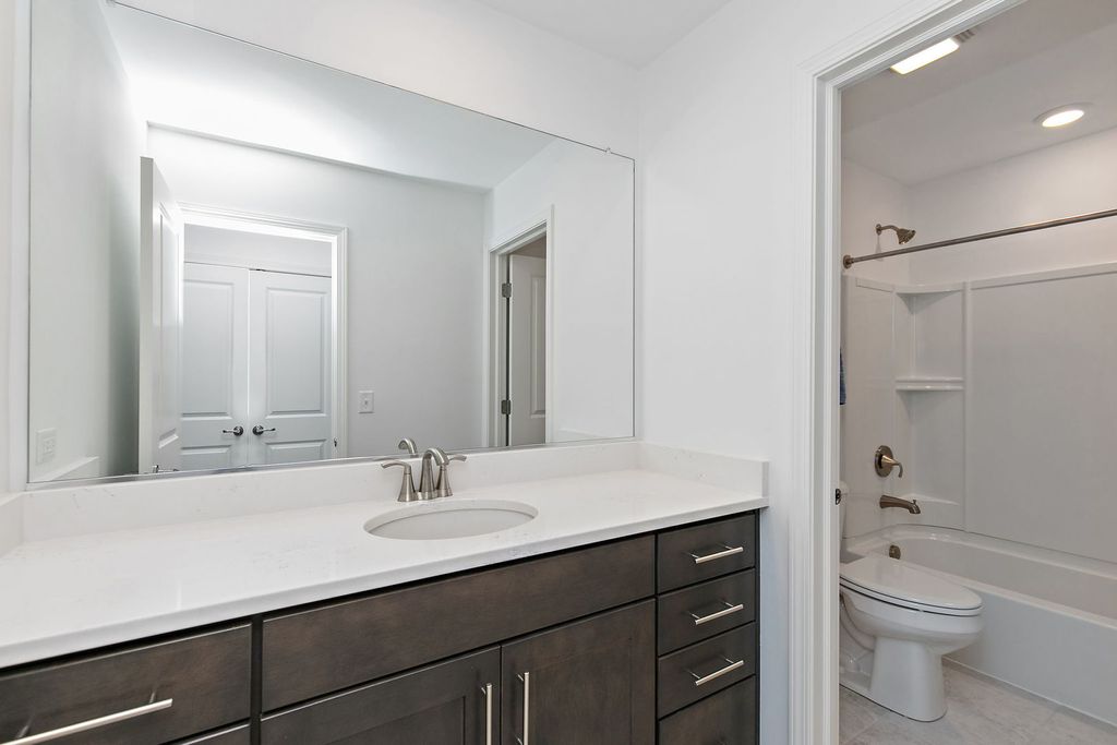 Woodlore Estates, a Renoir model which is the largest open floorplan with 3344 sq. ft. plus another 1536 sq. ft. unfinished basement for endless possibilities. First floor bedroom with full bath makes for a great in-law suite or guest room. Huge 2nd floor loft ideal for an office, playroom or a 2nd family room. Three full baths on 2nd floor including upgraded master bath, hall bath and a bedroom/bath ensuite. With the Designer Select Upgraded Package includes GE Profile high-end kitchen appliances, ceramic tile backsplash, extra large baseboard trim and crown moulding, hardwood flooring and more. Seller has added a 25' x 25' patio, fenced backyard, new washer/dryer, cabinets and quartz countertop in 2nd floor laundry room, painted entire interior of home including doors and trim, professionally done epoxy garage floor along with drywall and LED lighting, new light fixtures, custom built cabinets/shelving in family room, custom blinds through out. This move-in ready home blends elegance and functionality.