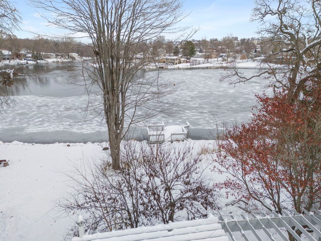 Year-round lake living at its finest! This Hillside ranch offers stunning water views from multiple rooms throughout the home. Whether you're relaxing in one of the bedrooms or gathering in the lower-level kitchen and living room, you'll enjoy beautiful, serene lake scenery every day. The primary bedroom is a true retreat-complete with a spacious walk-in closet and a private balcony overlooking the water. The lower level is the heart of the home, featuring a well-appointed kitchen with granite countertops, stainless steel appliances, and a rare 6-ft-deep pantry offering exceptional storage. The adjacent living room showcases a cozy gas fireplace and a wall of windows that frame the lake perfectly. Step out from the dining area through the slider to a inviting patio complete with a brick outdoor fireplace-the ideal spot for year-round entertaining. Additional highlights include: Recessed lighting throughout. Hardwood floors and ceiling fans in all 3 bedrooms! Attached extra-deep 34-foot garage - fits 2 small cars or provides excellent storage Newer high-efficiency furnace. Newer tankless water heater. Heated floors in both the garage and the lower level for those cold winter months. Conveniently located near shopping, restaurants, parks, and schools! This home combines comfort, charm, and breathtaking lake views-your perfect escape without ever leaving home. Take a look today!